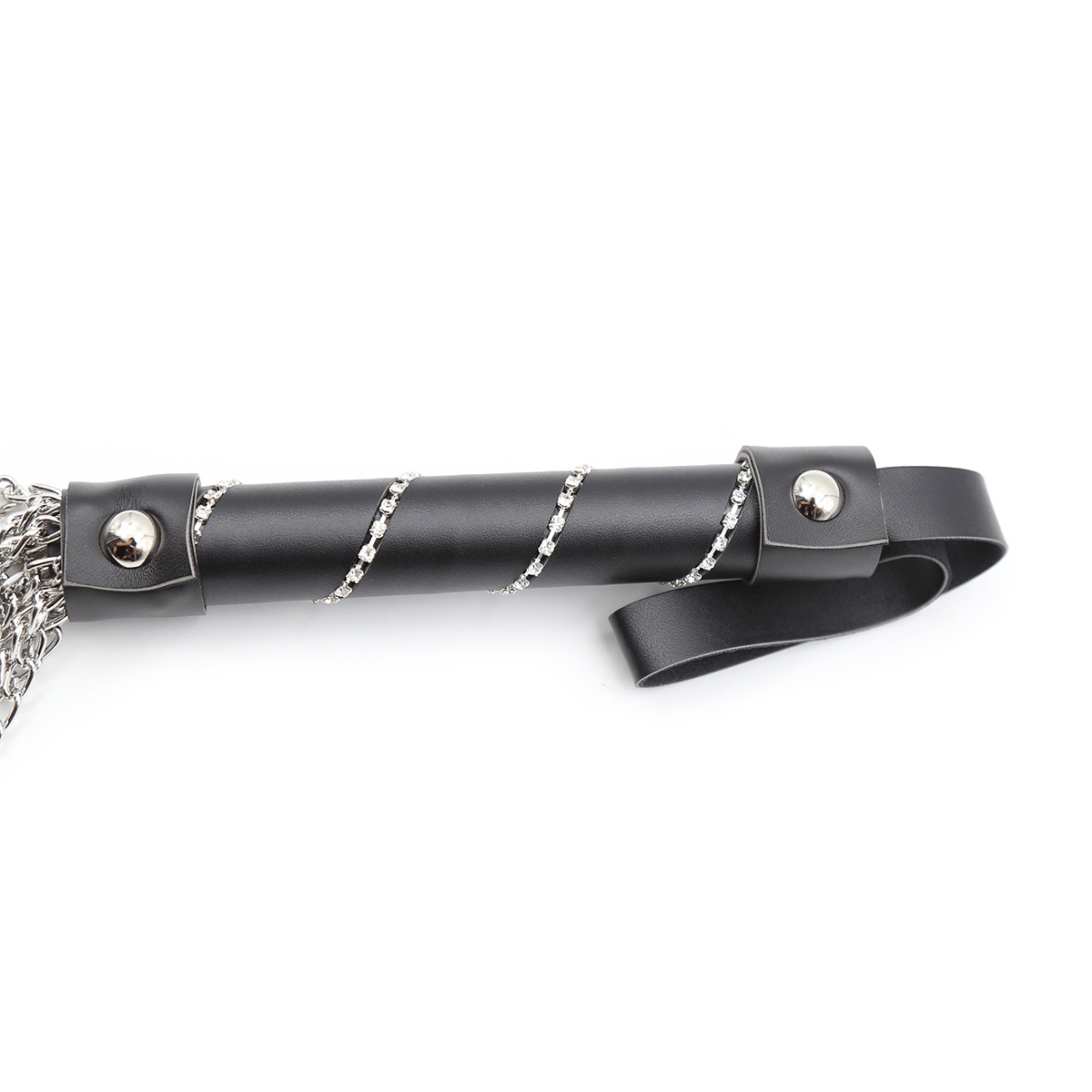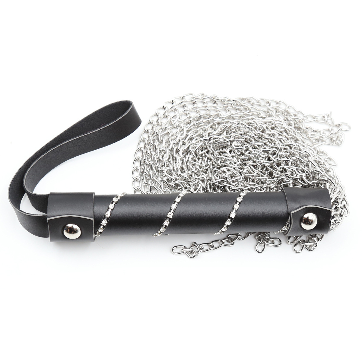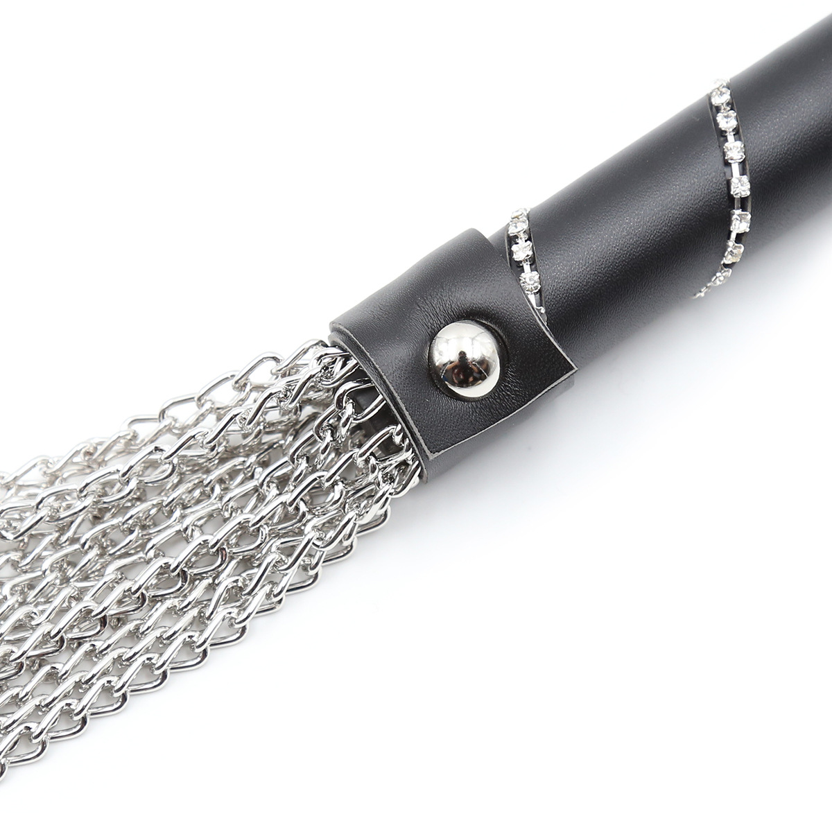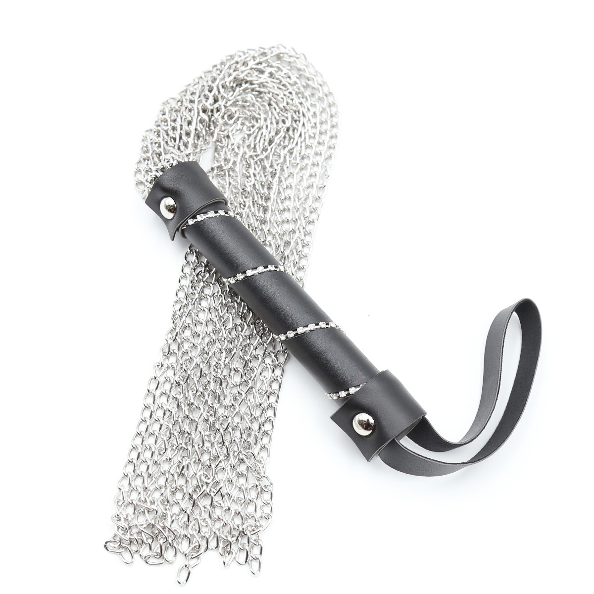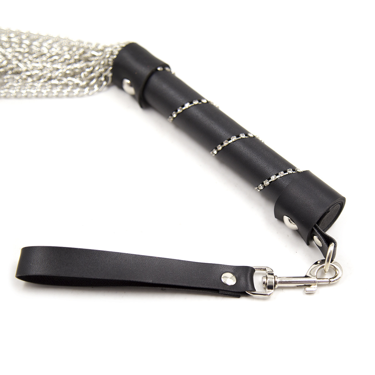 Design Variations: Black handle chain, Black handle with diamond chain, Metallic silver chain whip