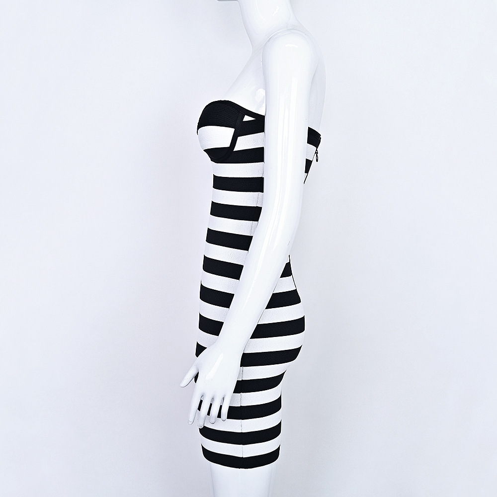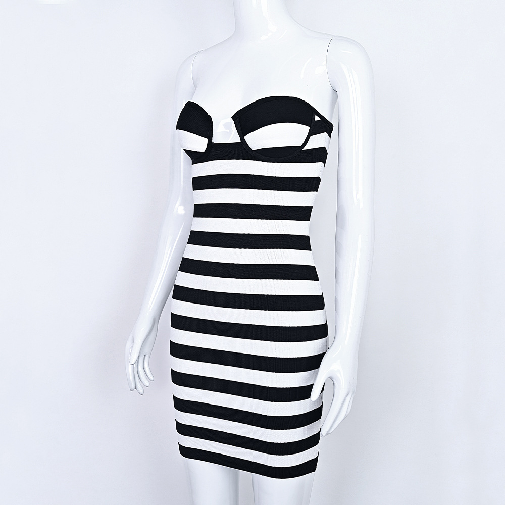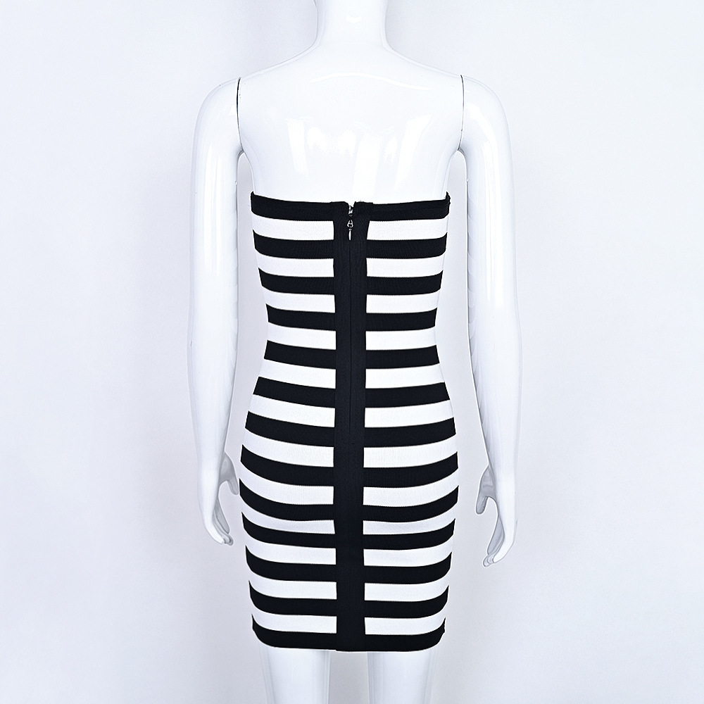 Black White Striped Bandage Bodycon Dress