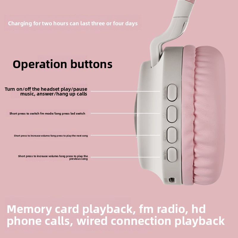 Luminous Cat Ear Design: Eye-catching LED light-up ears with playful aesthetic appeal.