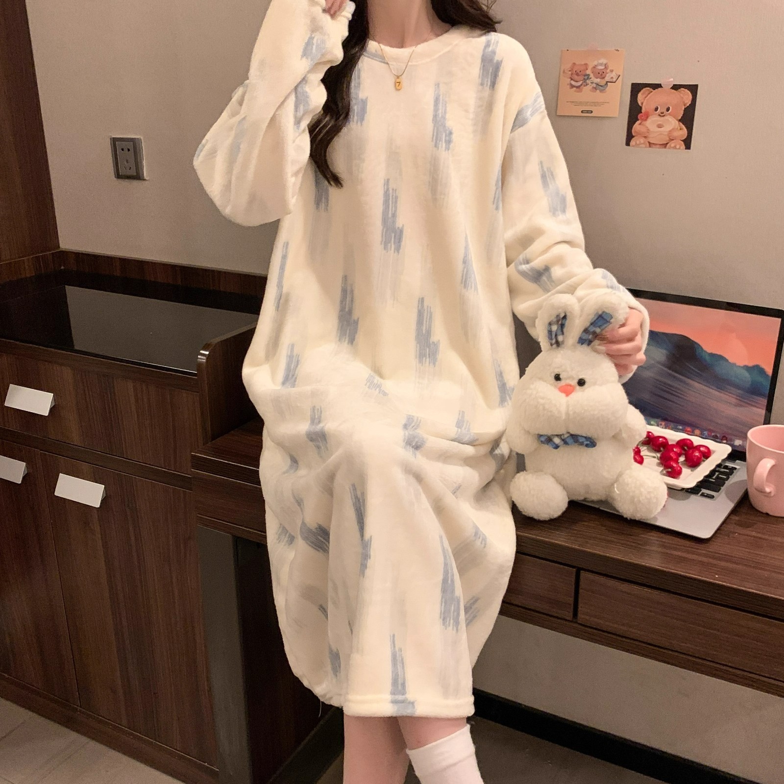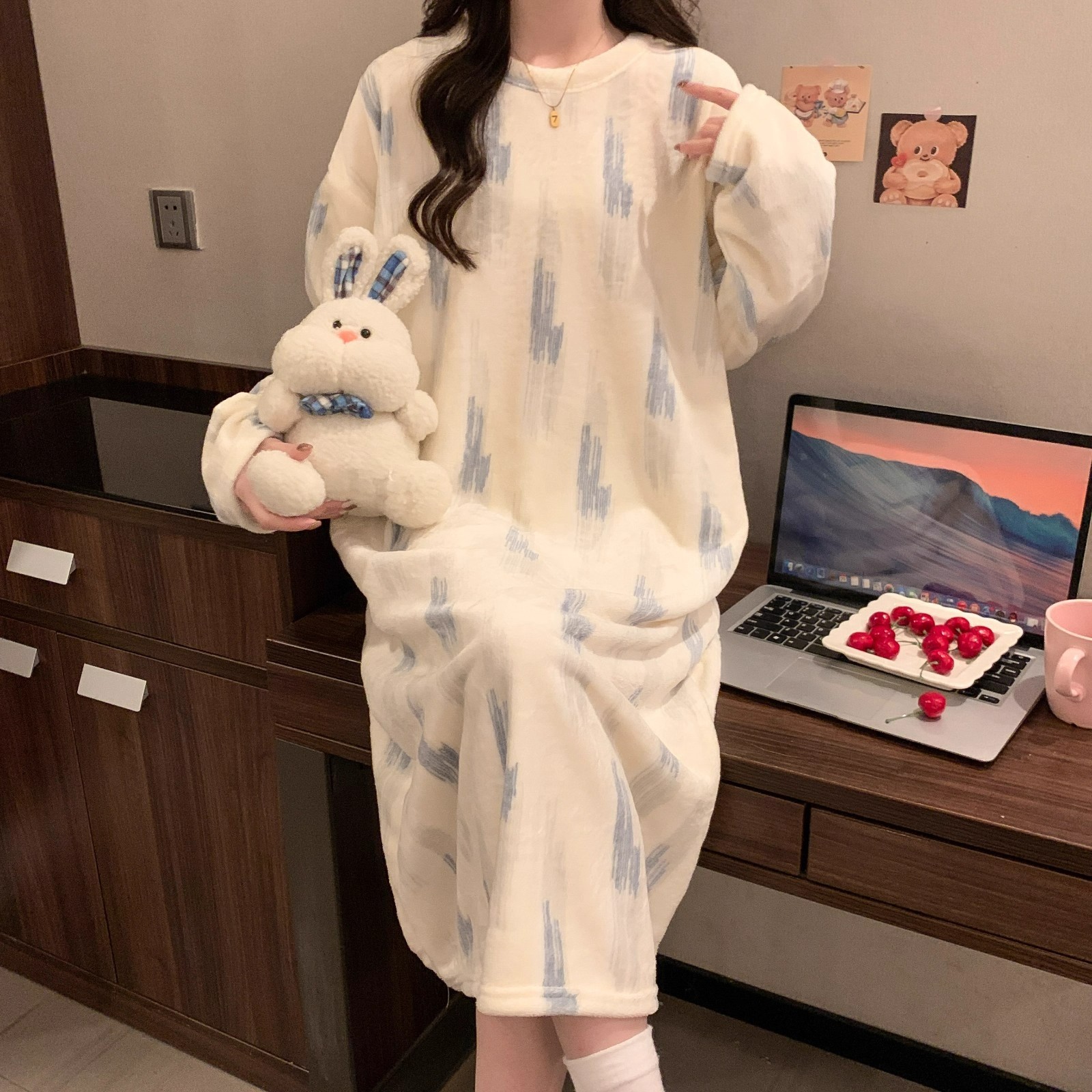Coral fiber nightgown for women