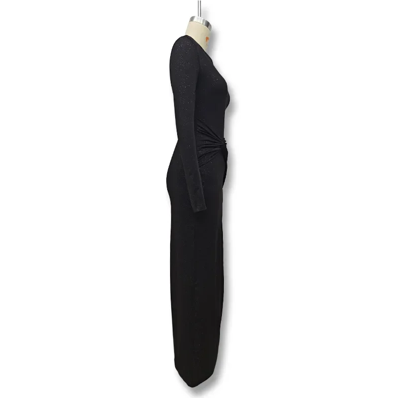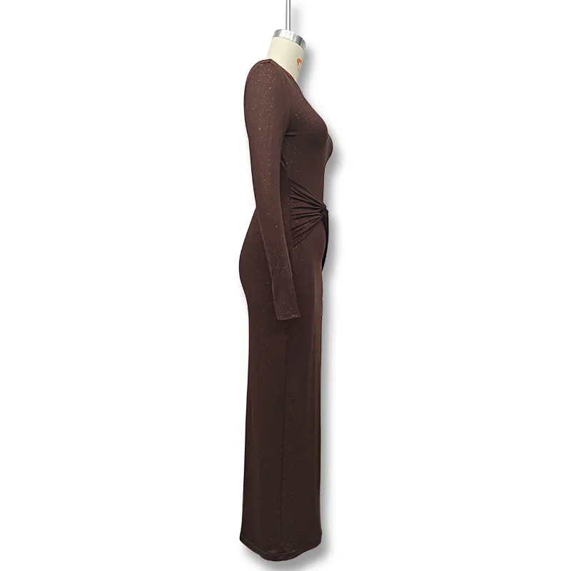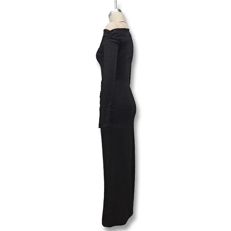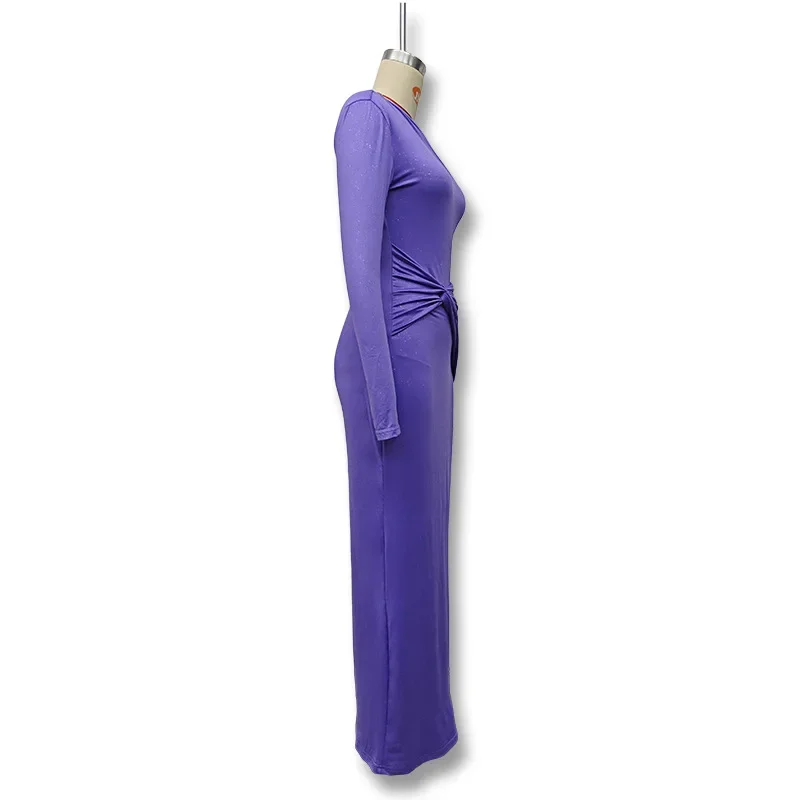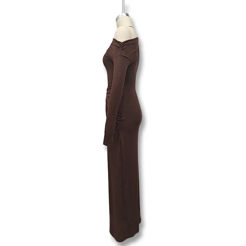 European and American style cross-border autumn and winter new hot-selling slant shoulder long sleeve hip dress fashion sexy pleated slim dress