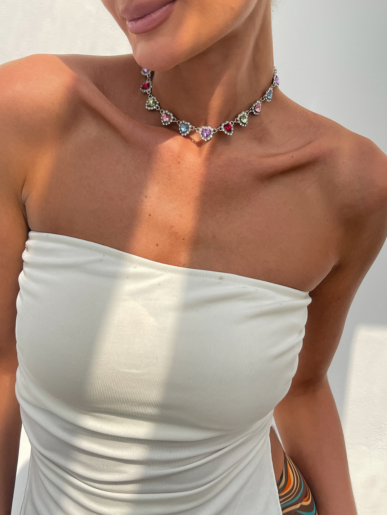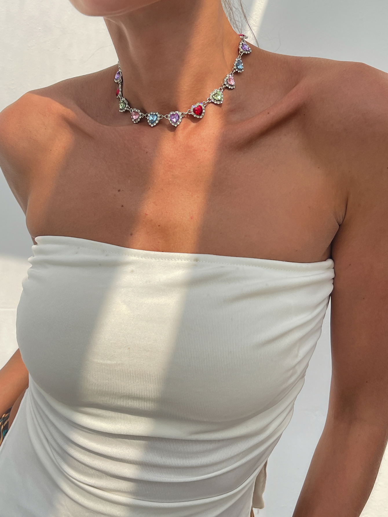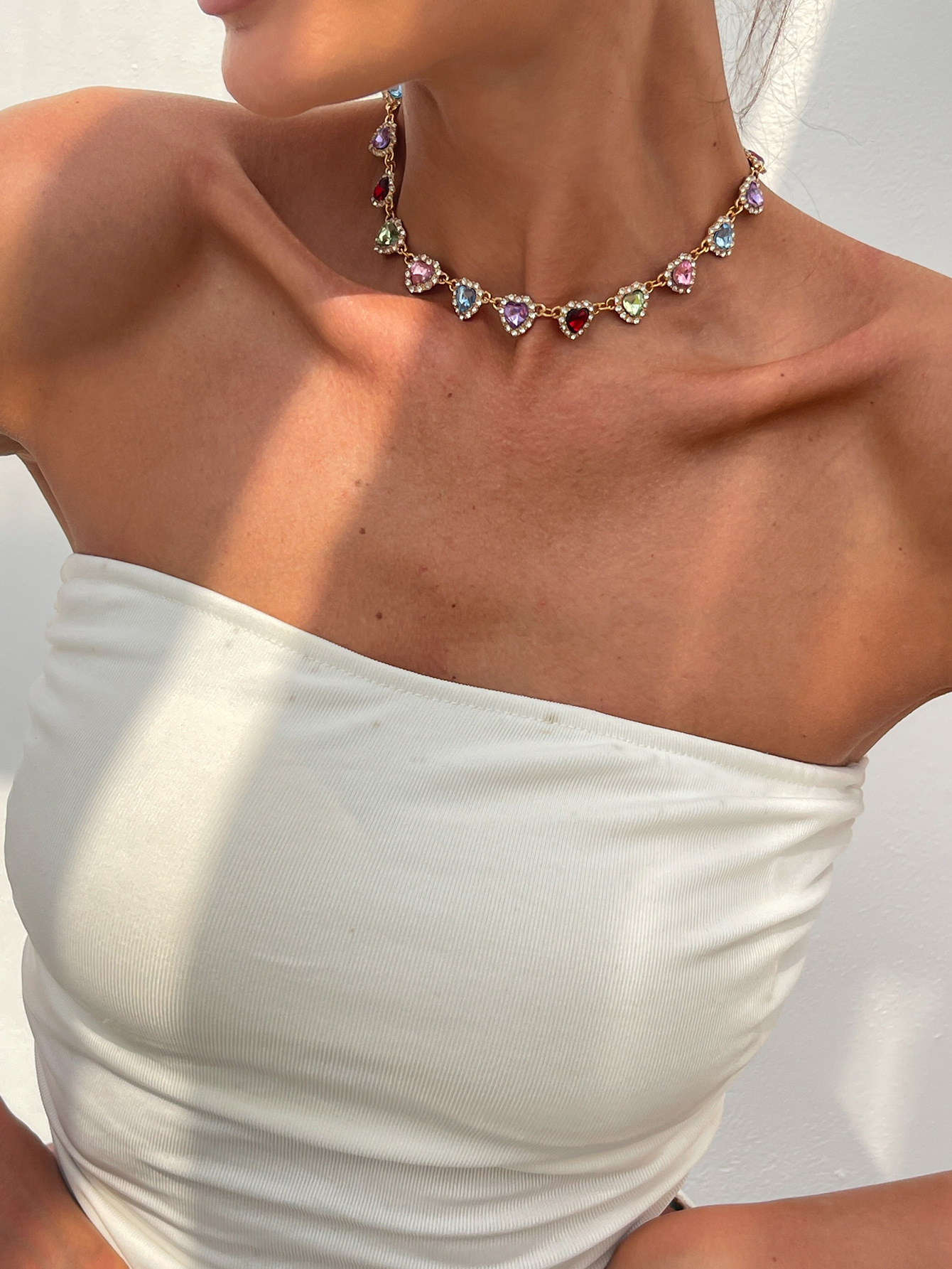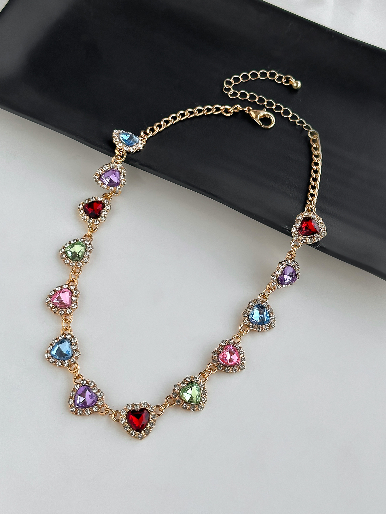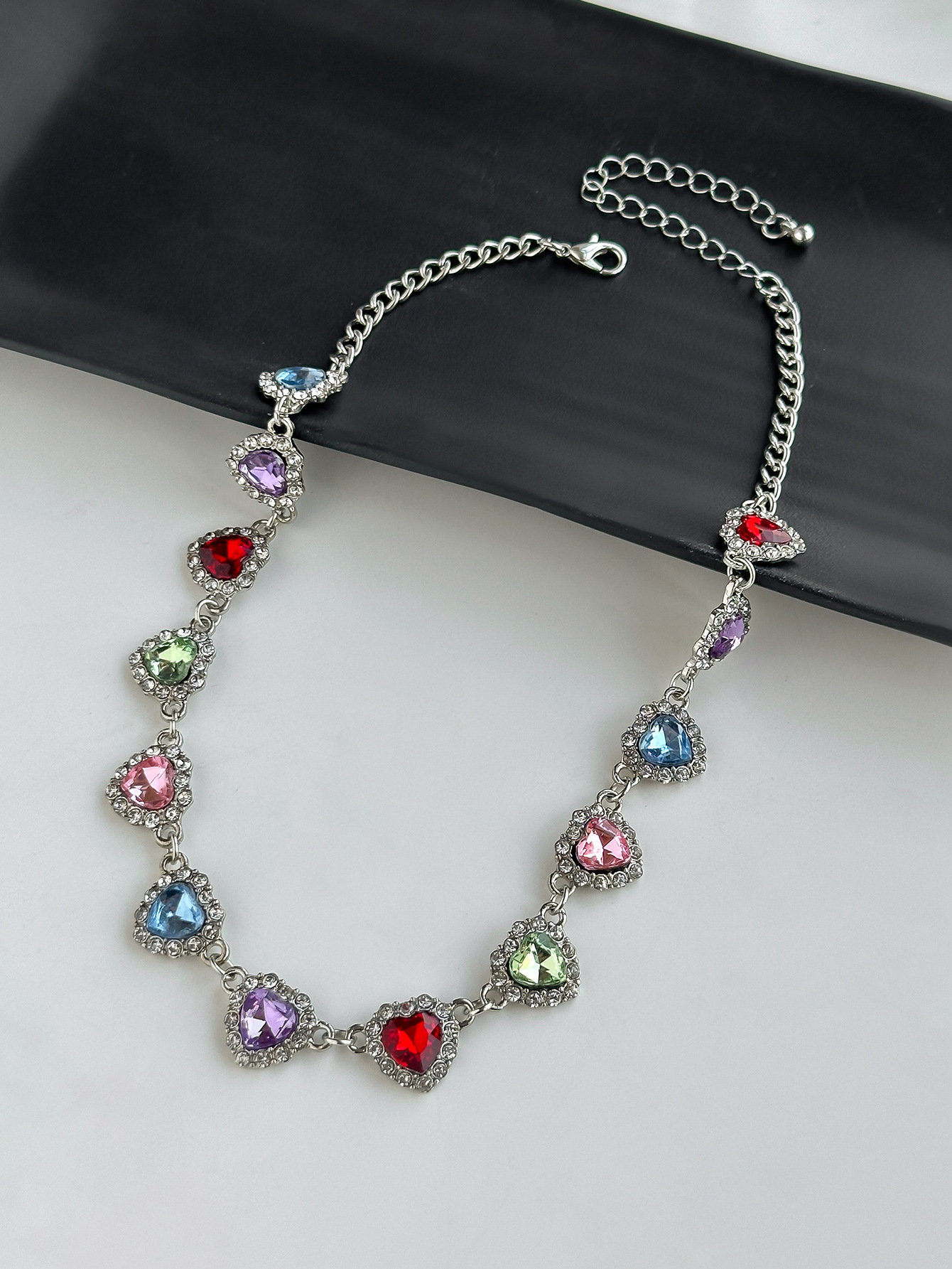 Design: Heart-shaped pendant with colorful diamond accents for a stylish appearance