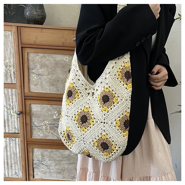 Hollowed-out flower woven bag