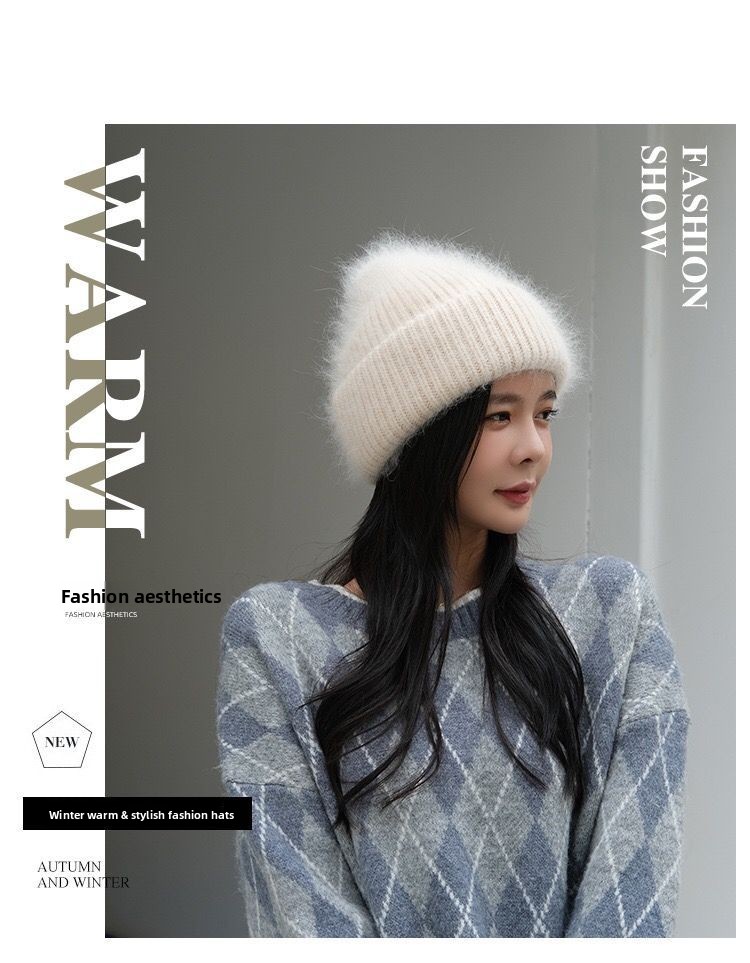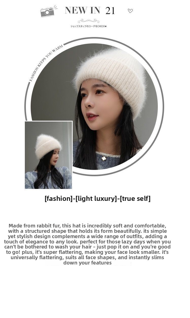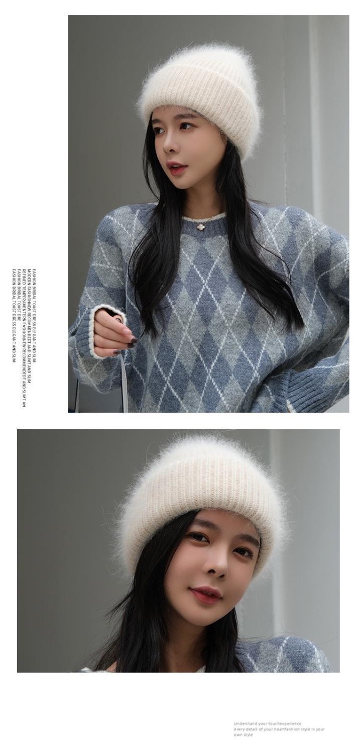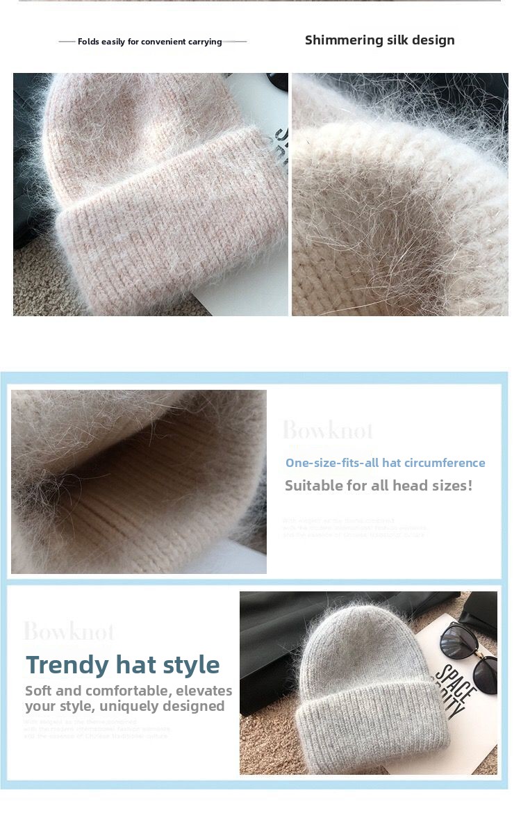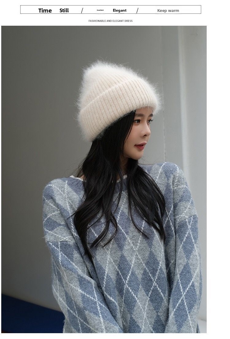 Luxury Rhinestone Angora Rabbit Fur Knitted Winter Hat