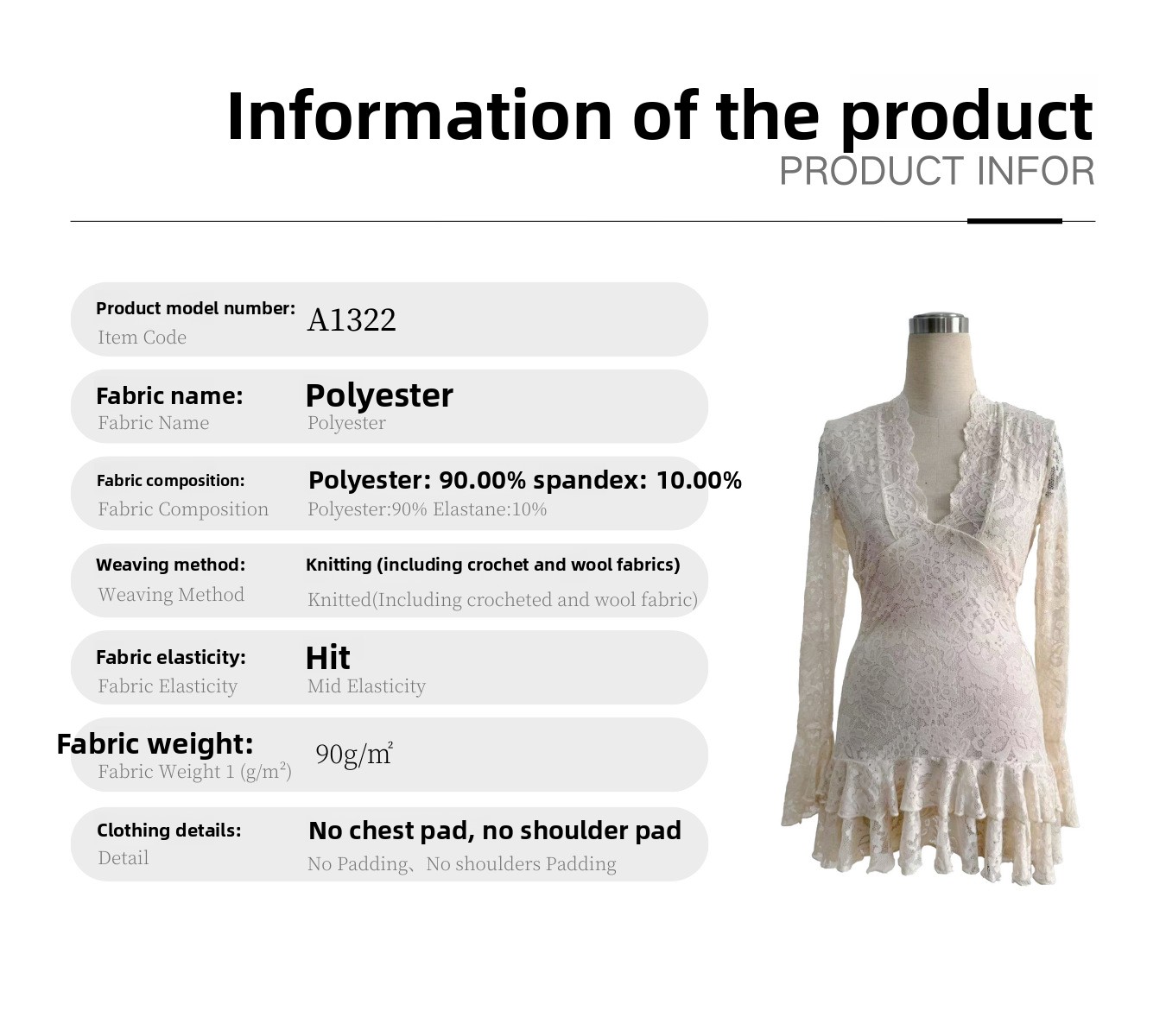 Lace Detailing: Elegant lace accents enhance visual appeal