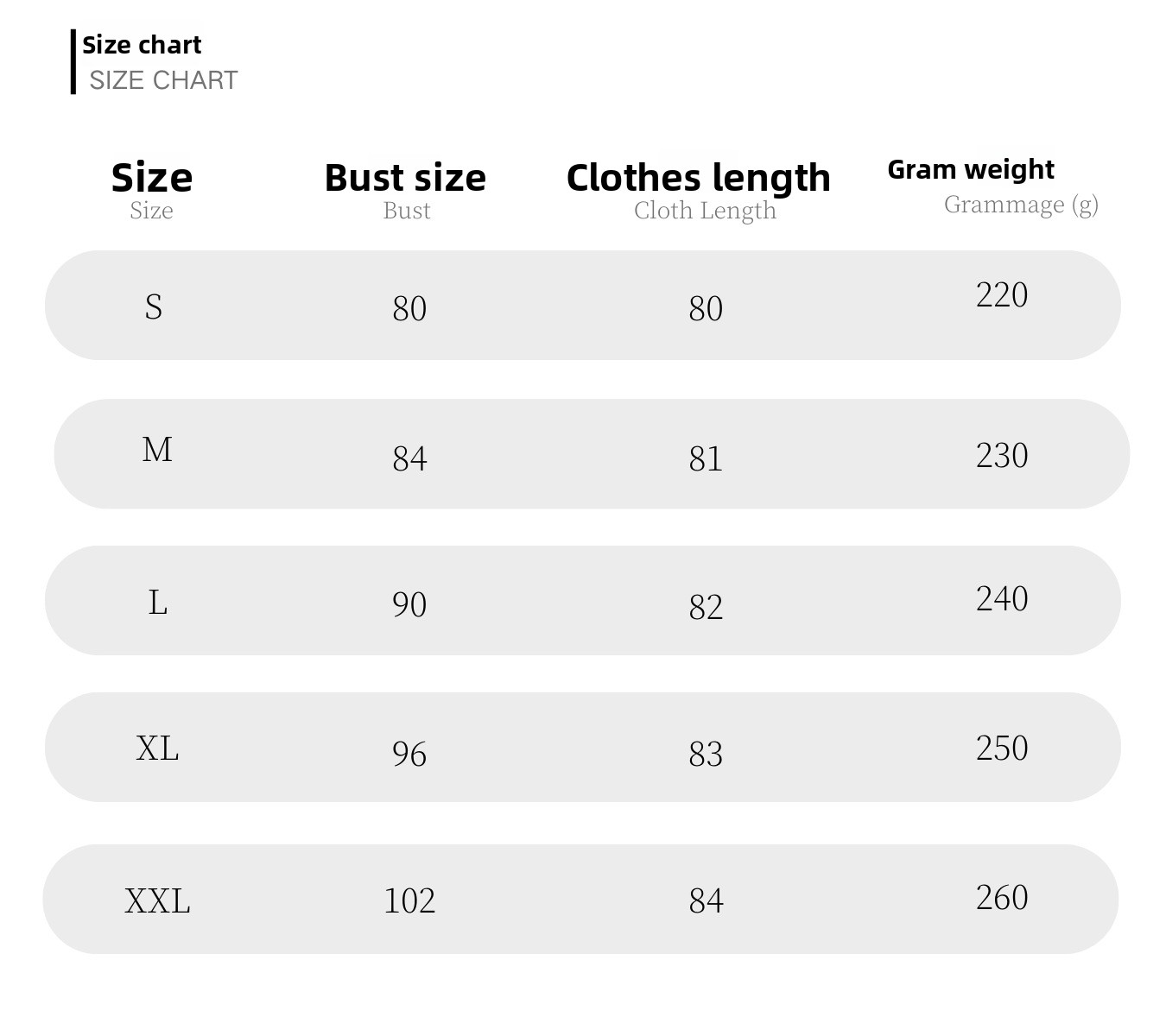 Sizes: S, M, L, XL, XXL