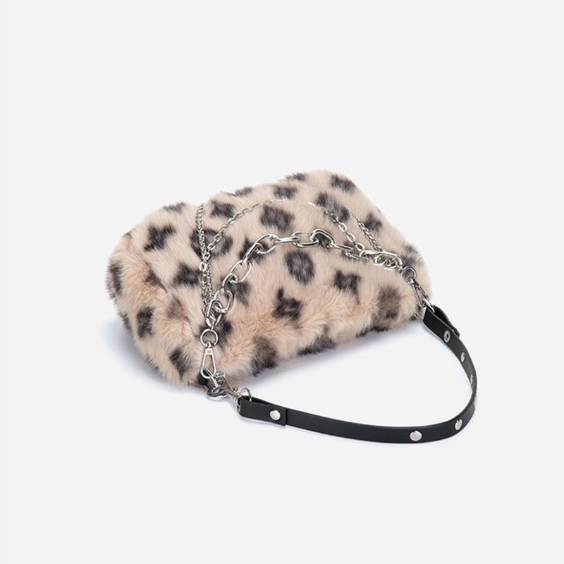 Stylish Design: Trendy leopard print and chain details for a fashionable look.