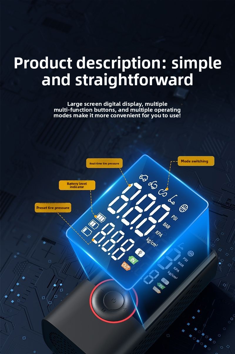 Digital Display: Features a digital screen for precise pressure monitoring.