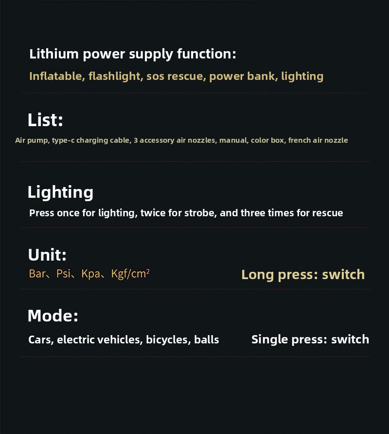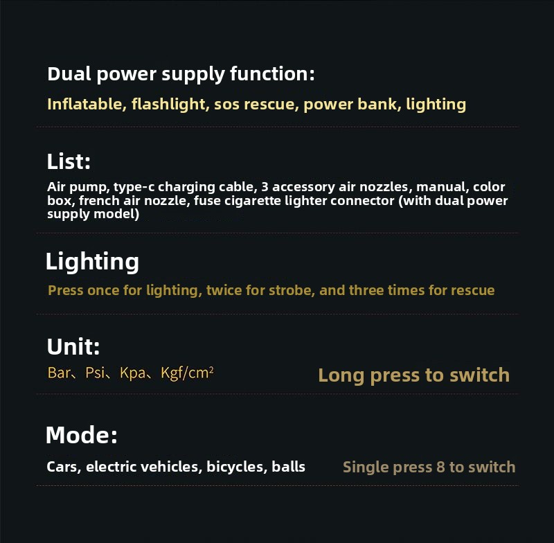 Multifunctional: Suitable for bicycles, cars, and other inflatables with dual-purpose use.