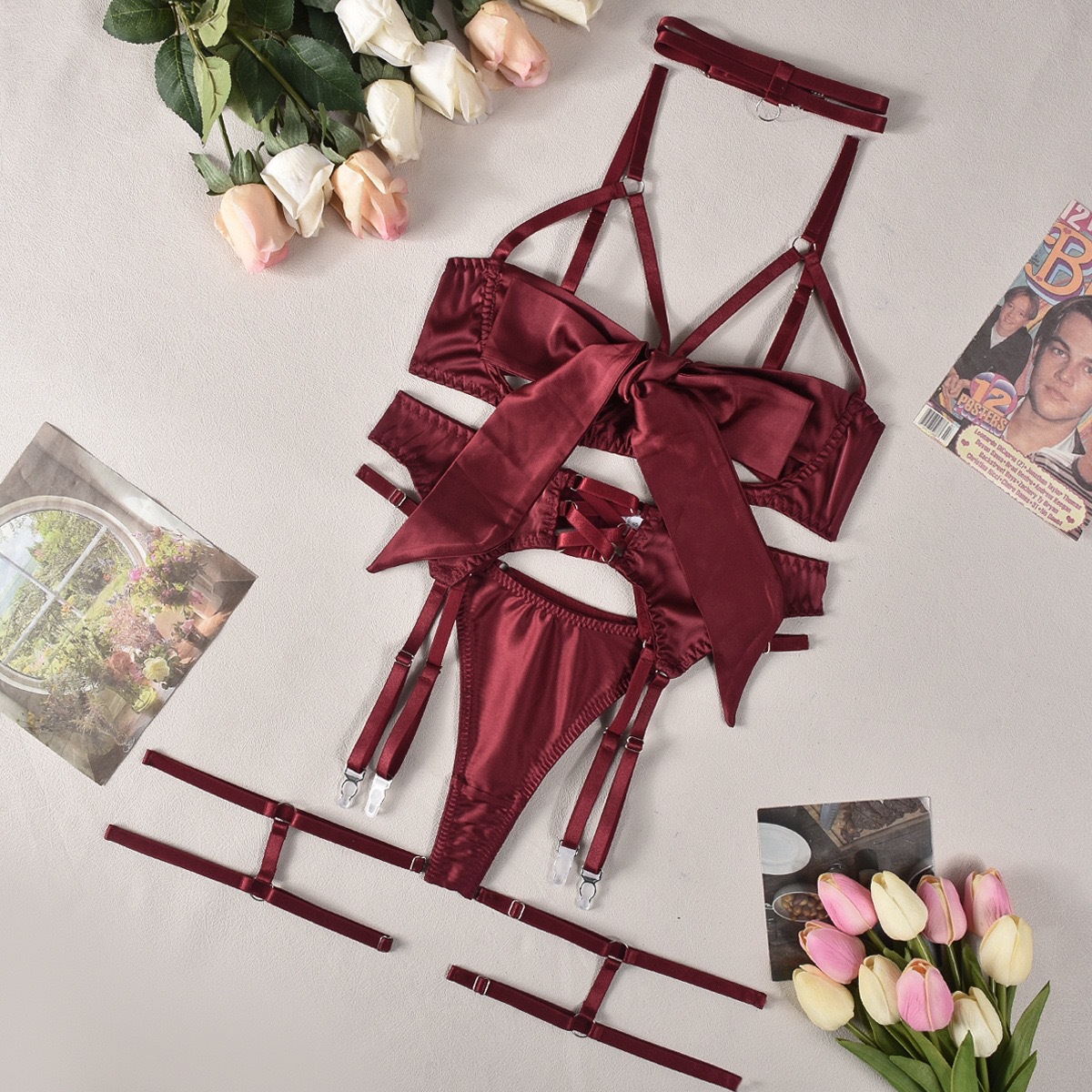 Sexy Bow Lingerie Set with Gloves and Leg Ring