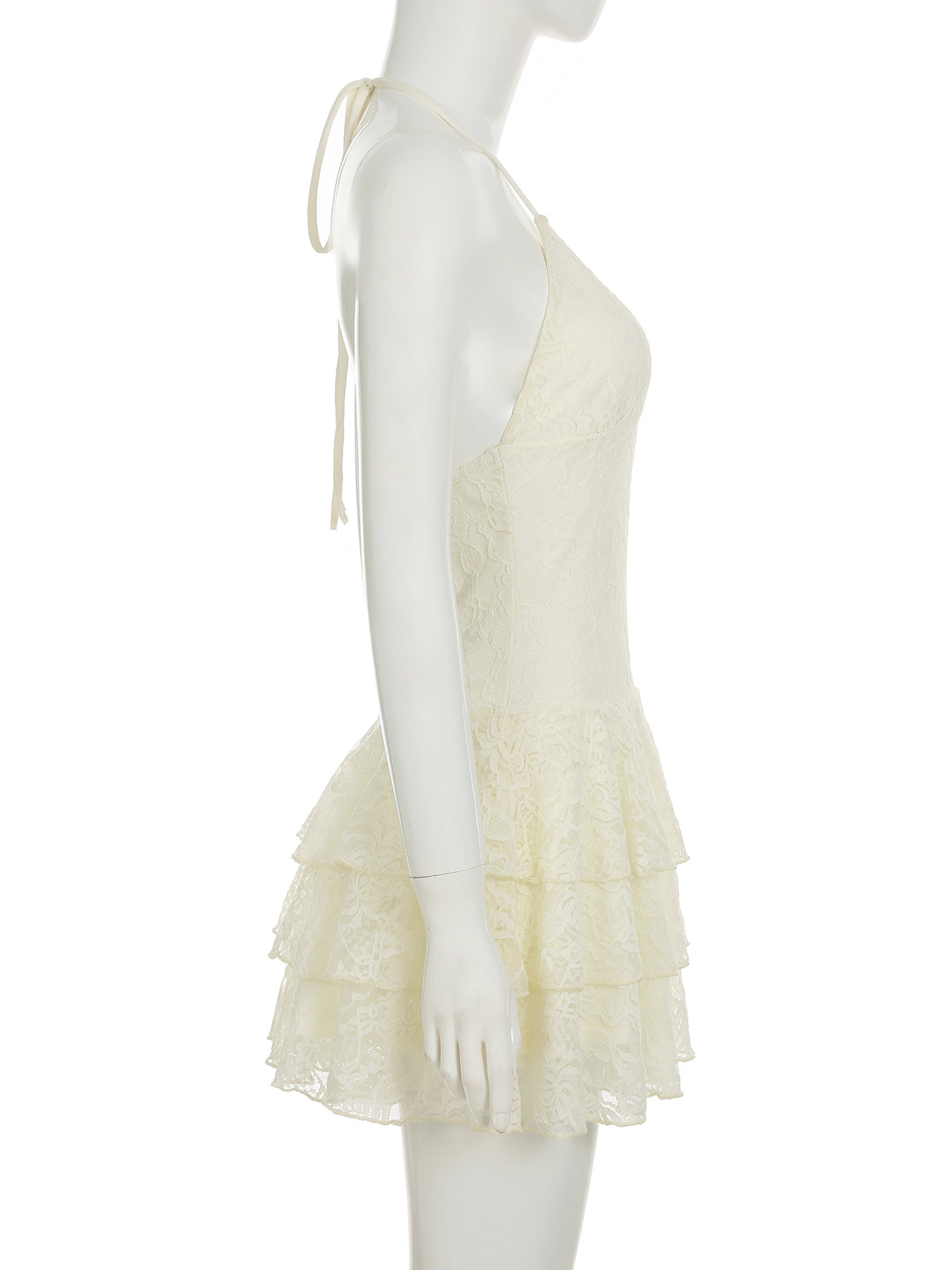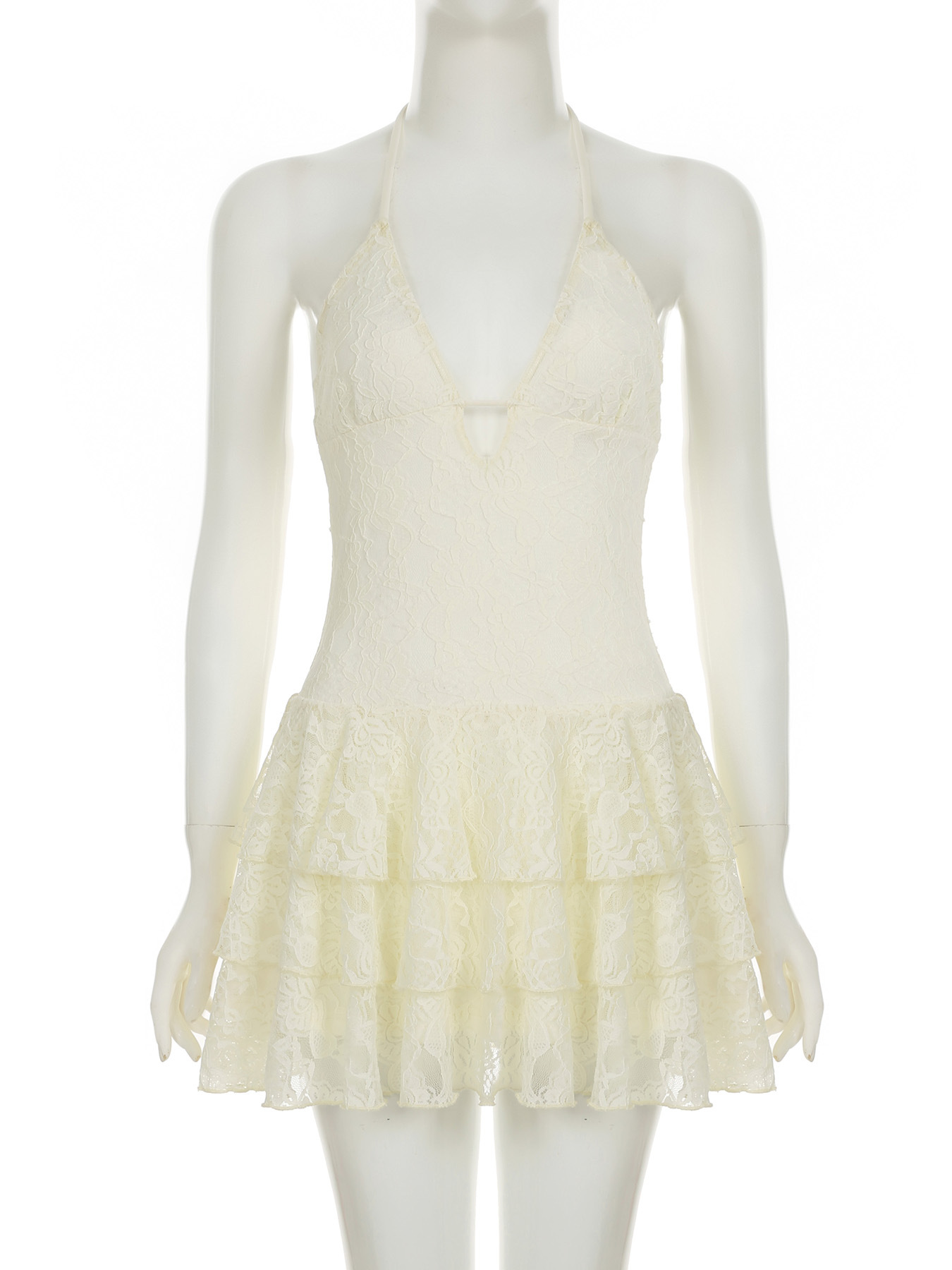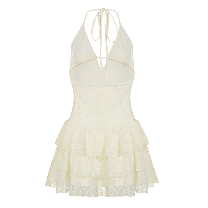 Sexy Halter Neck Lace High Waist Cake Skirt Dress