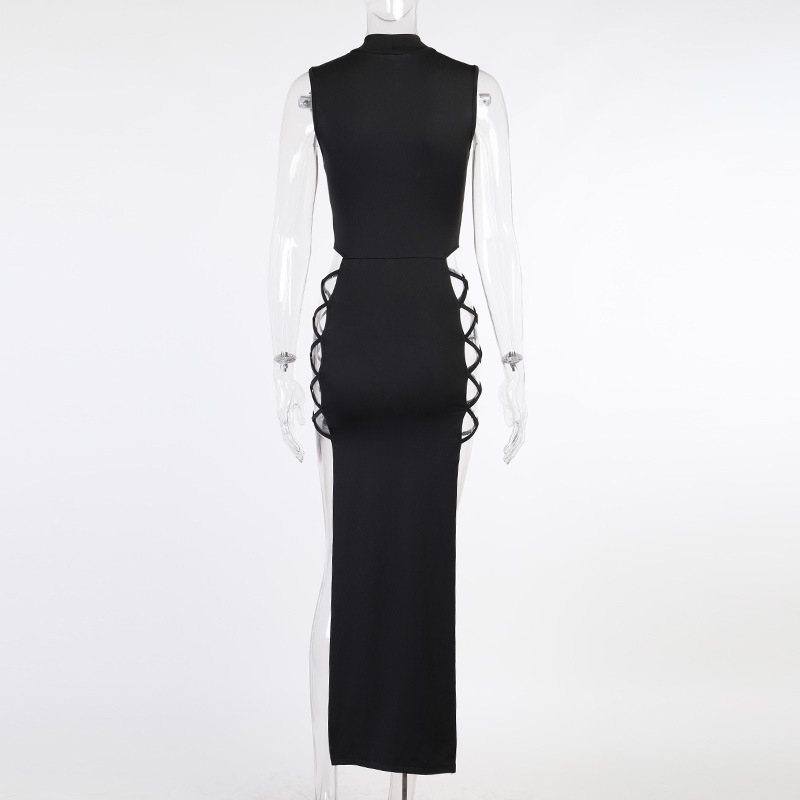 Sexy Design: High-slit and strappy vest dress for a bold and alluring look.