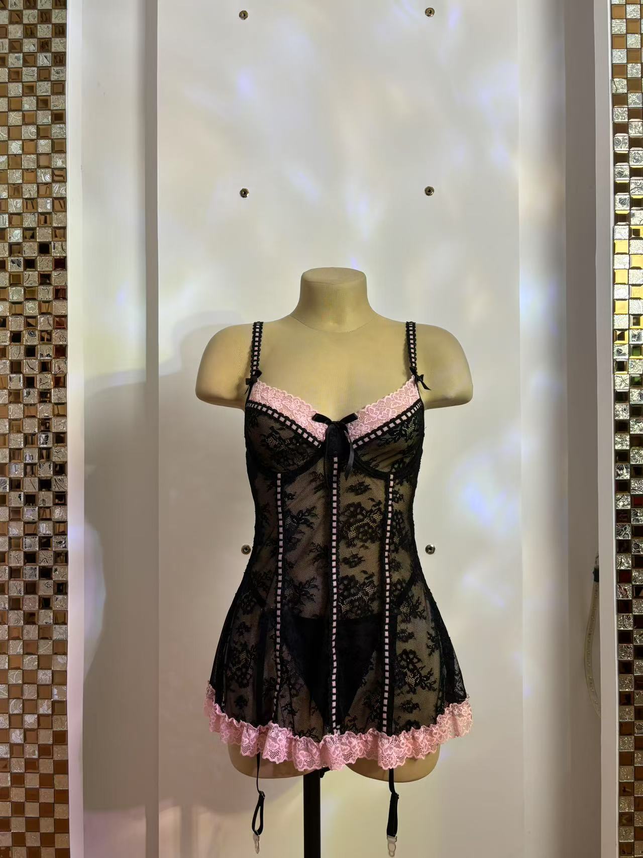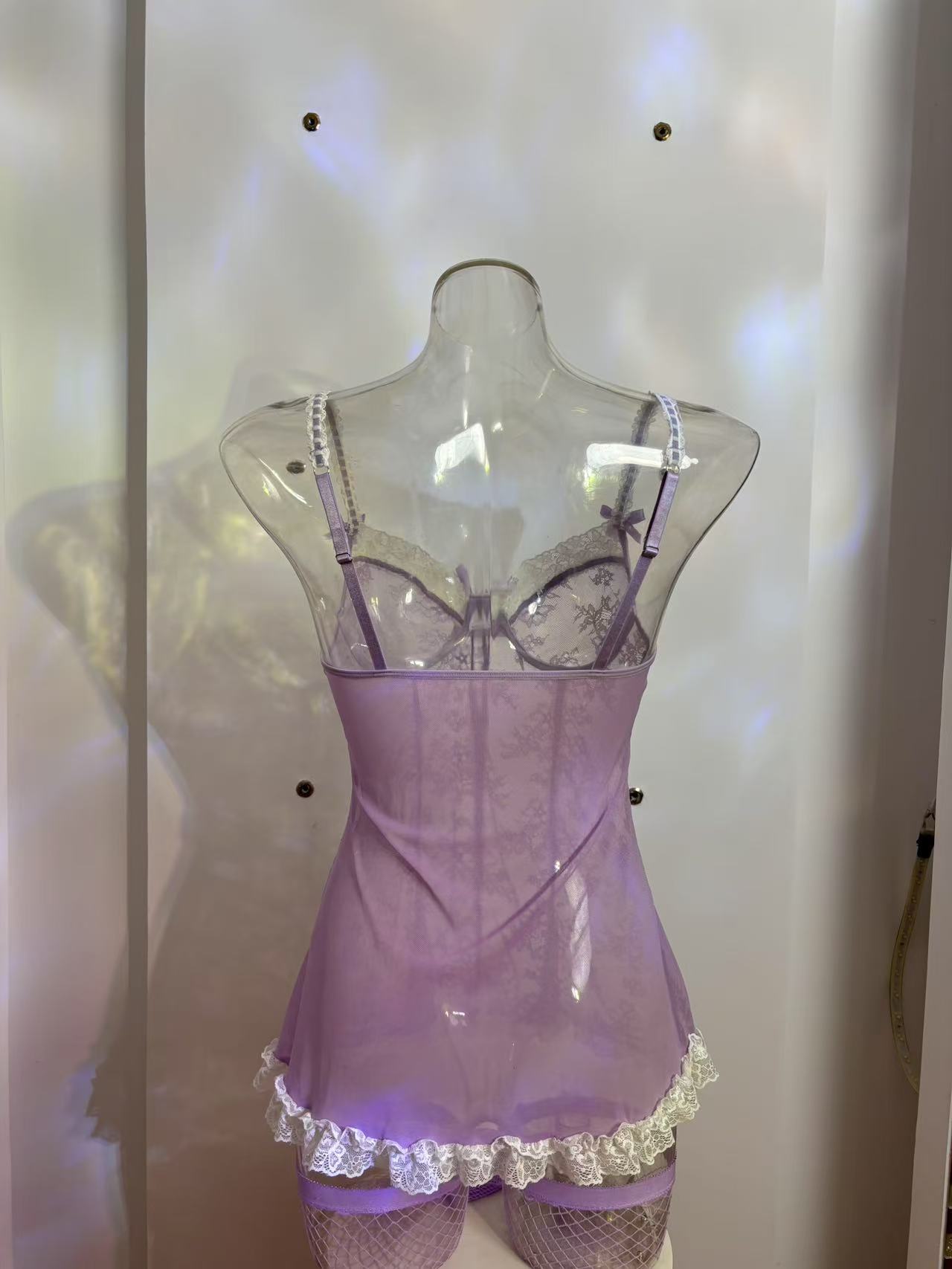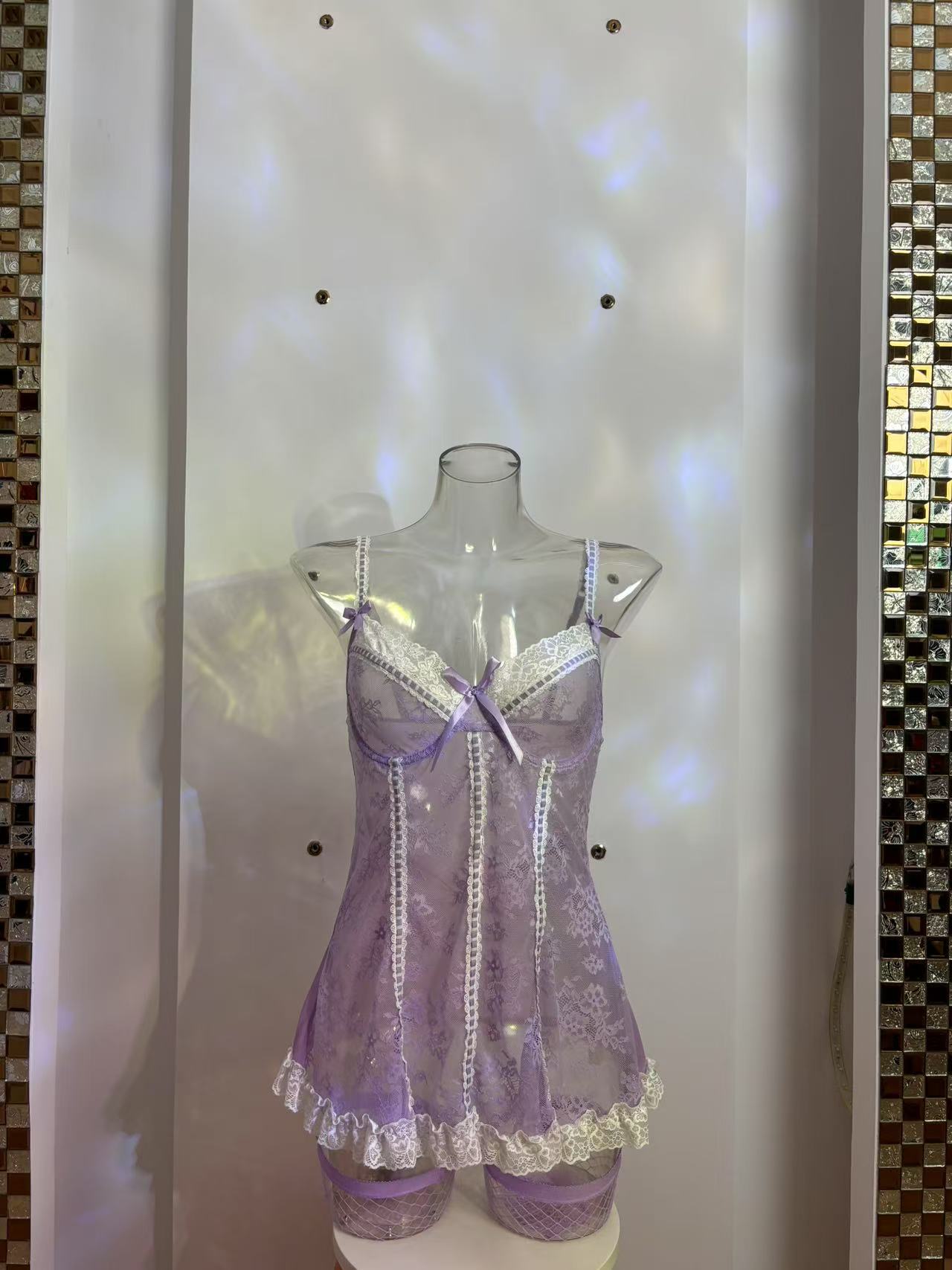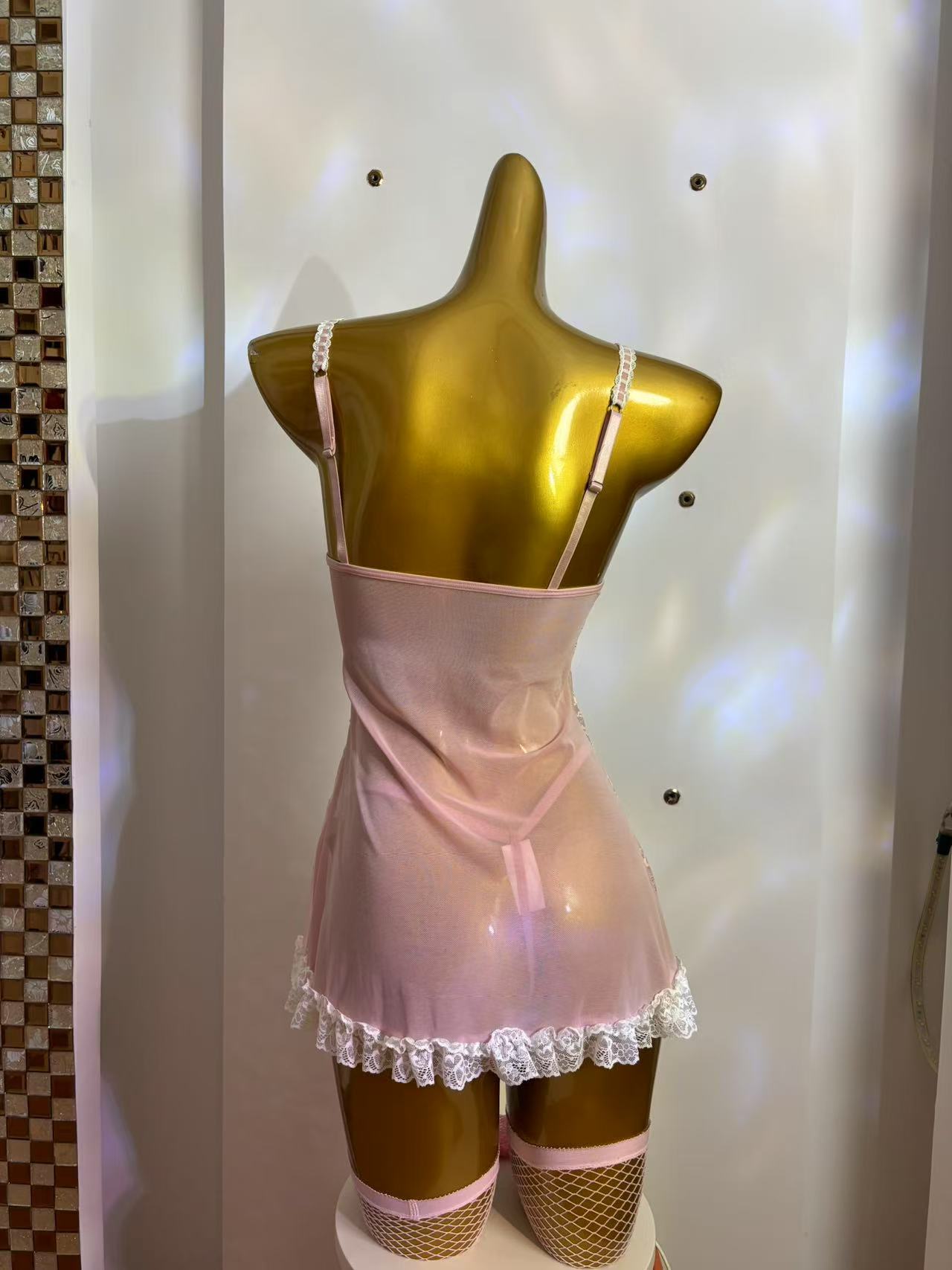 Complete Set: Includes a one-piece skirt and fishnet stockings for a full ensemble.