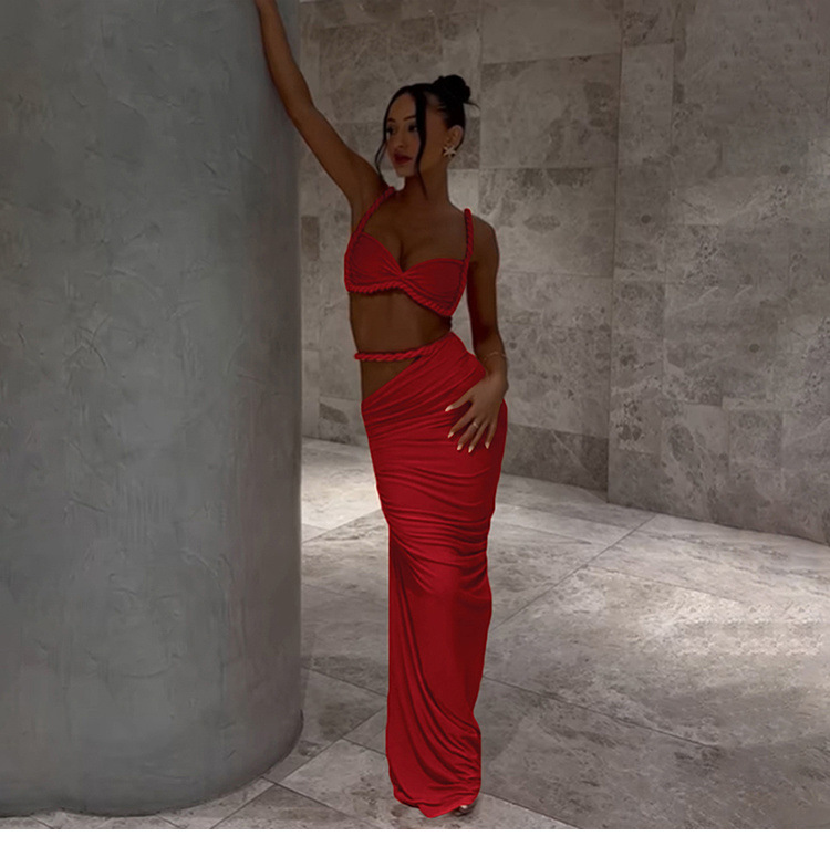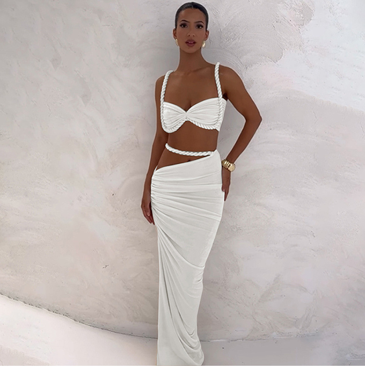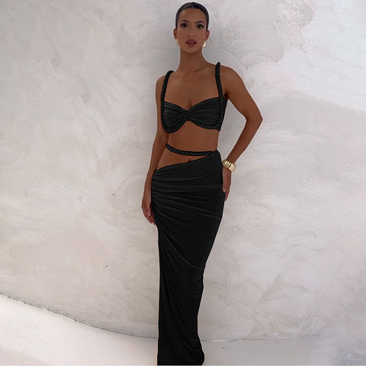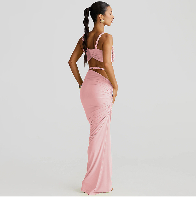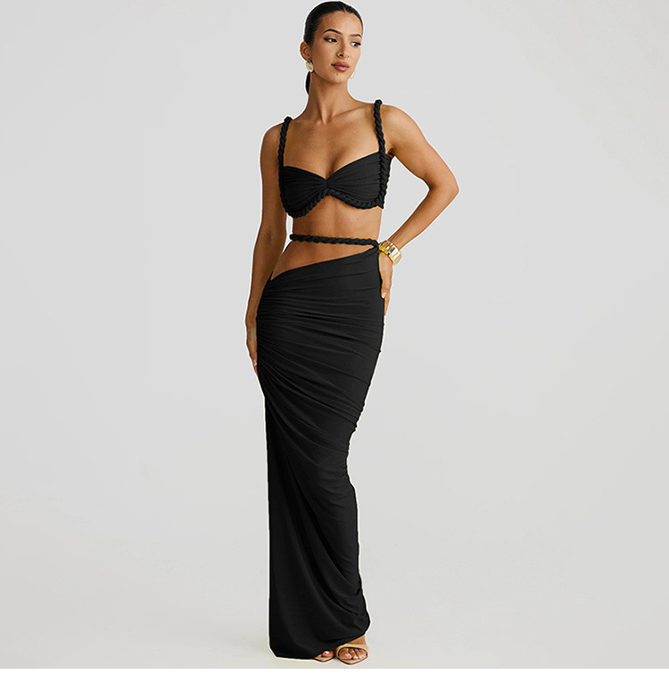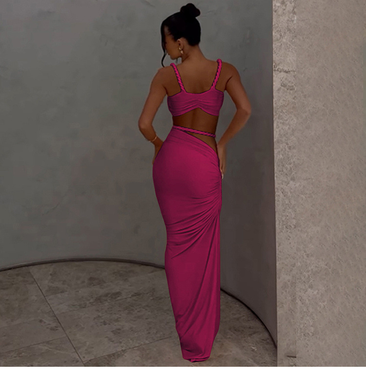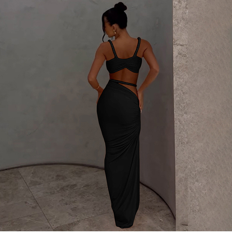 Sexy Design: Pleated hollow tight rope suspender dress for a bold and stylish look.