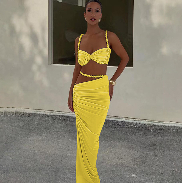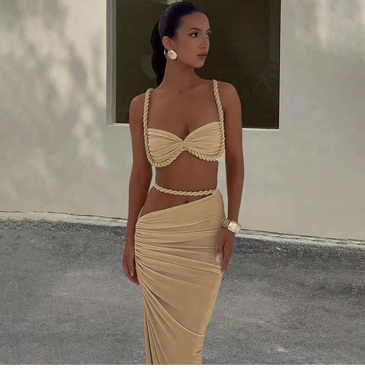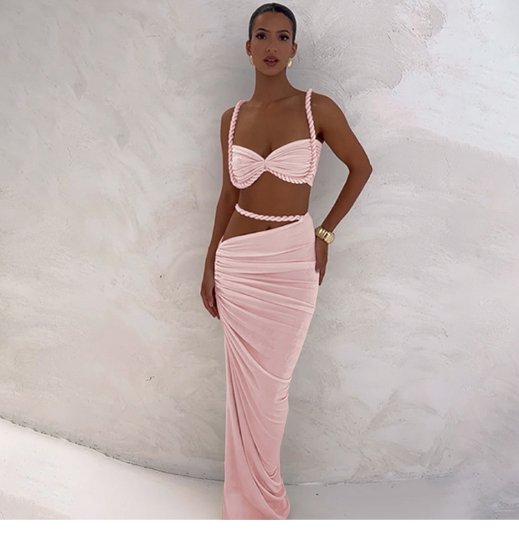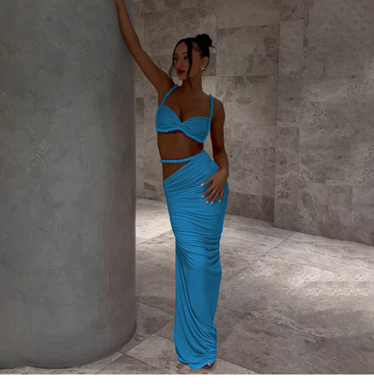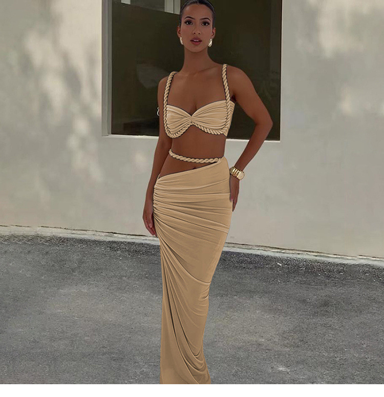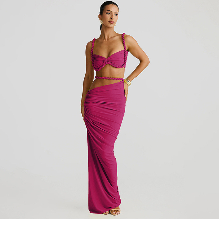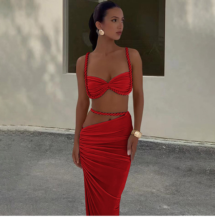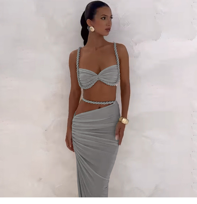 Sexy Design: Pleated hollow tight rope suspender dress for a bold and stylish look.