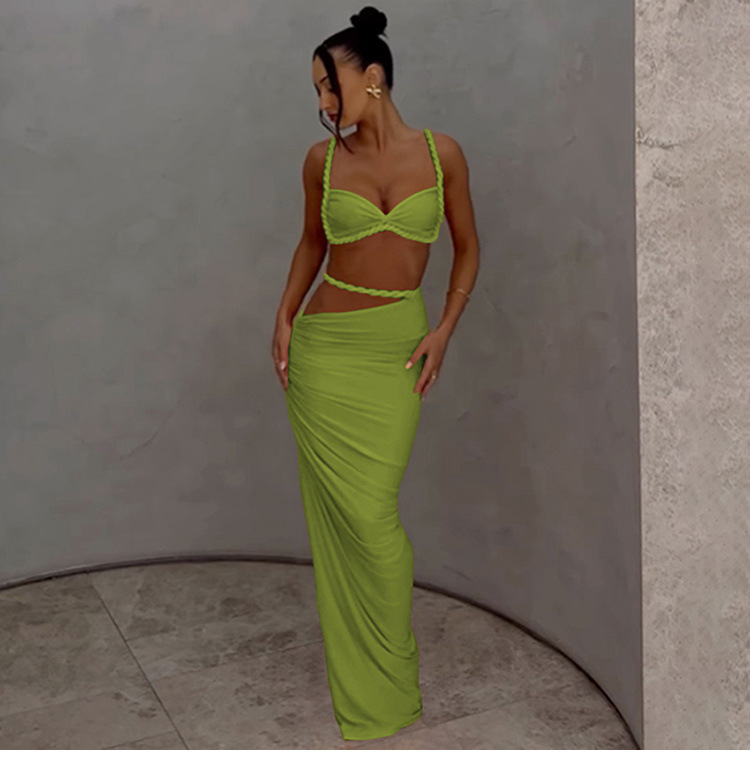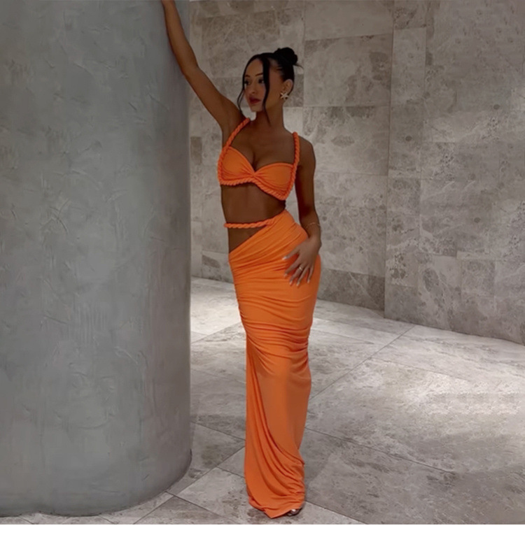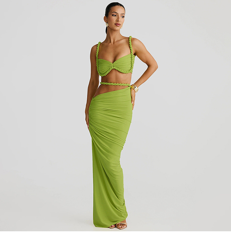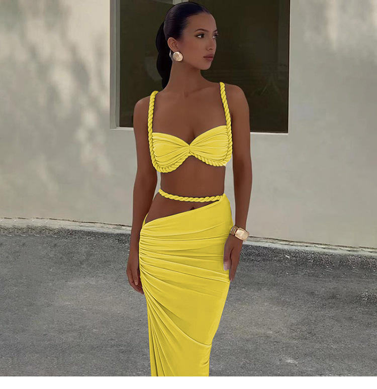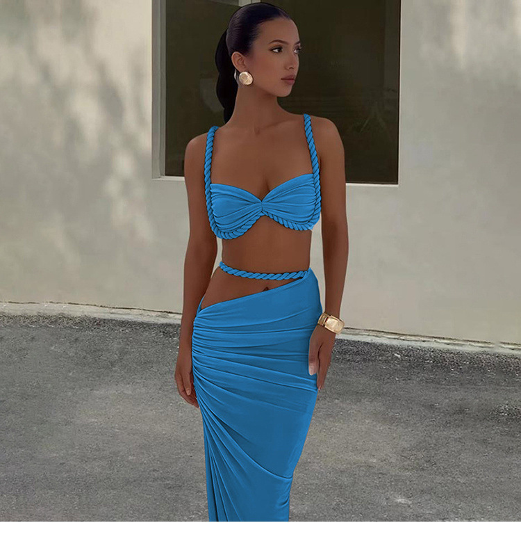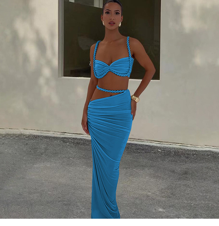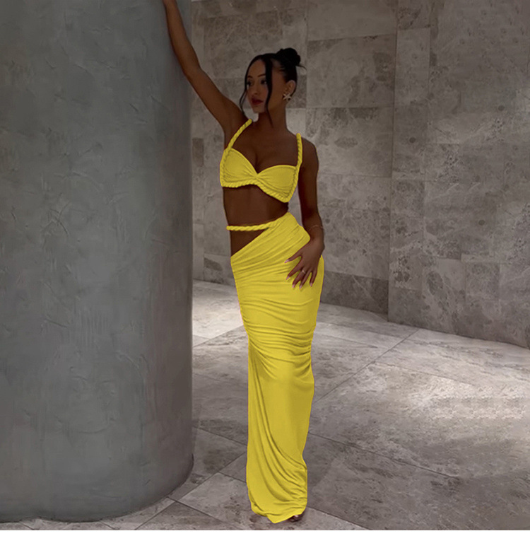 Sexy Design: Pleated hollow tight rope suspender dress for a bold and stylish look.