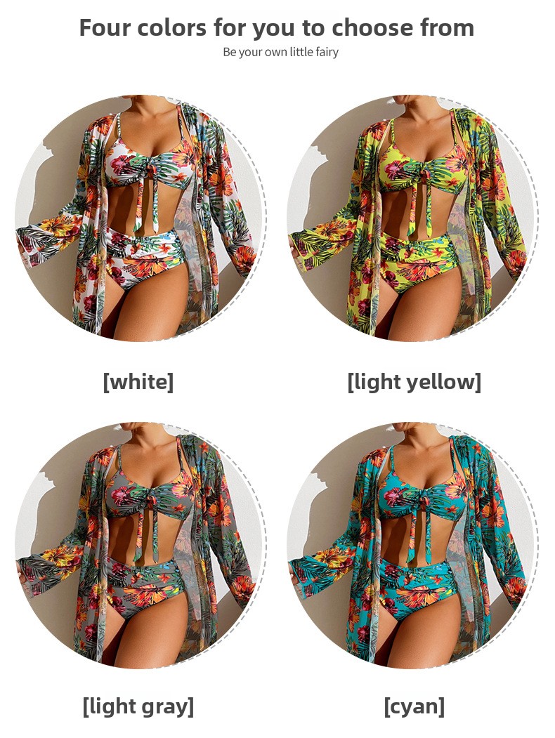 Three-piece Design: Includes a long-sleeved blouse, bikini top, and bottom for versatile styling.