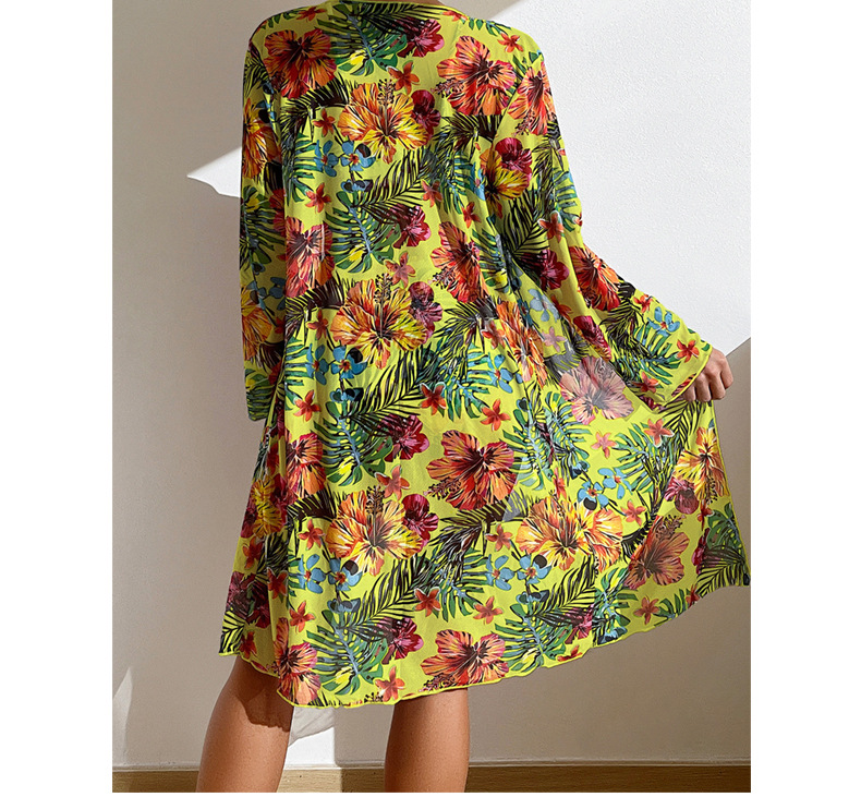 Style: High-waist, printed, long-sleeved cover-up.