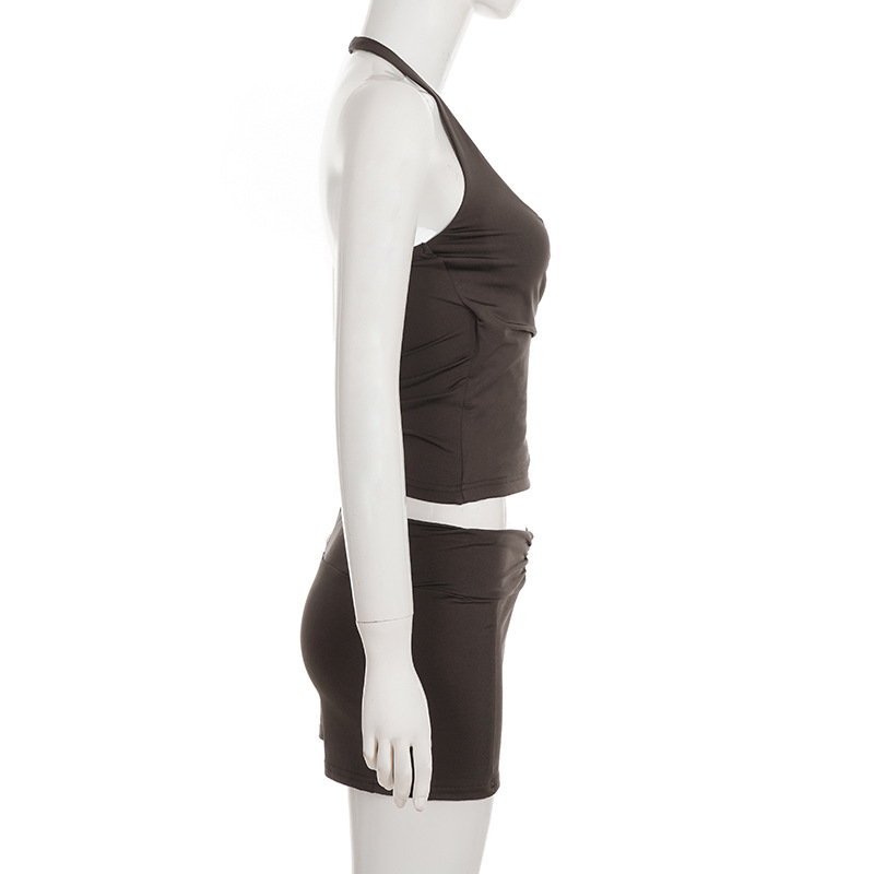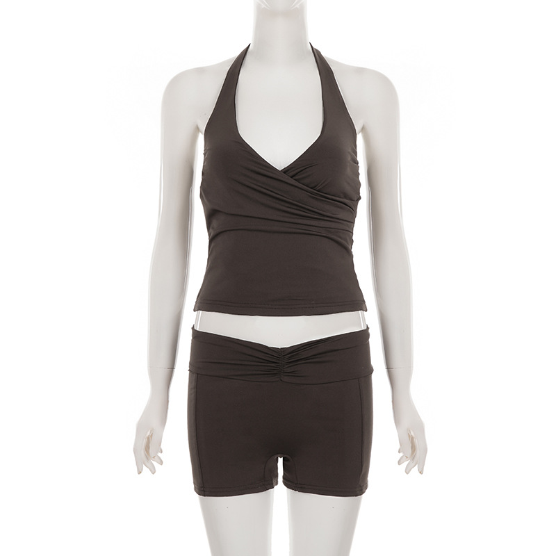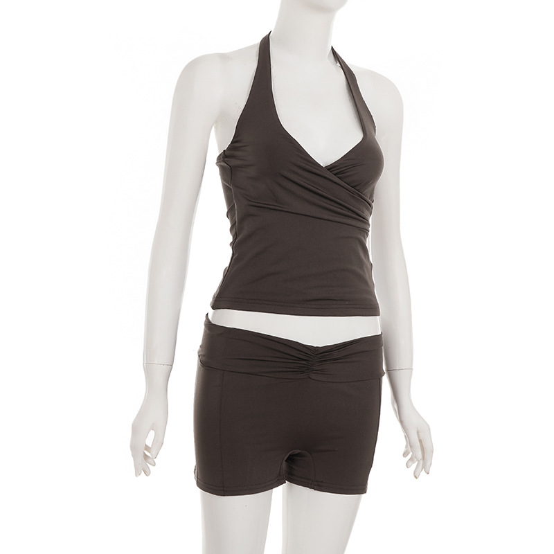 Style: Sleeveless halter top with matching shorts