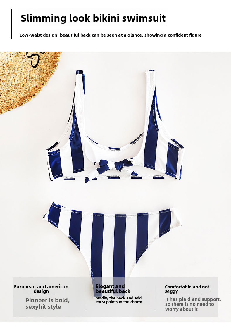 Stylish Design: Stripe printed bikini with a sexy and backless style.