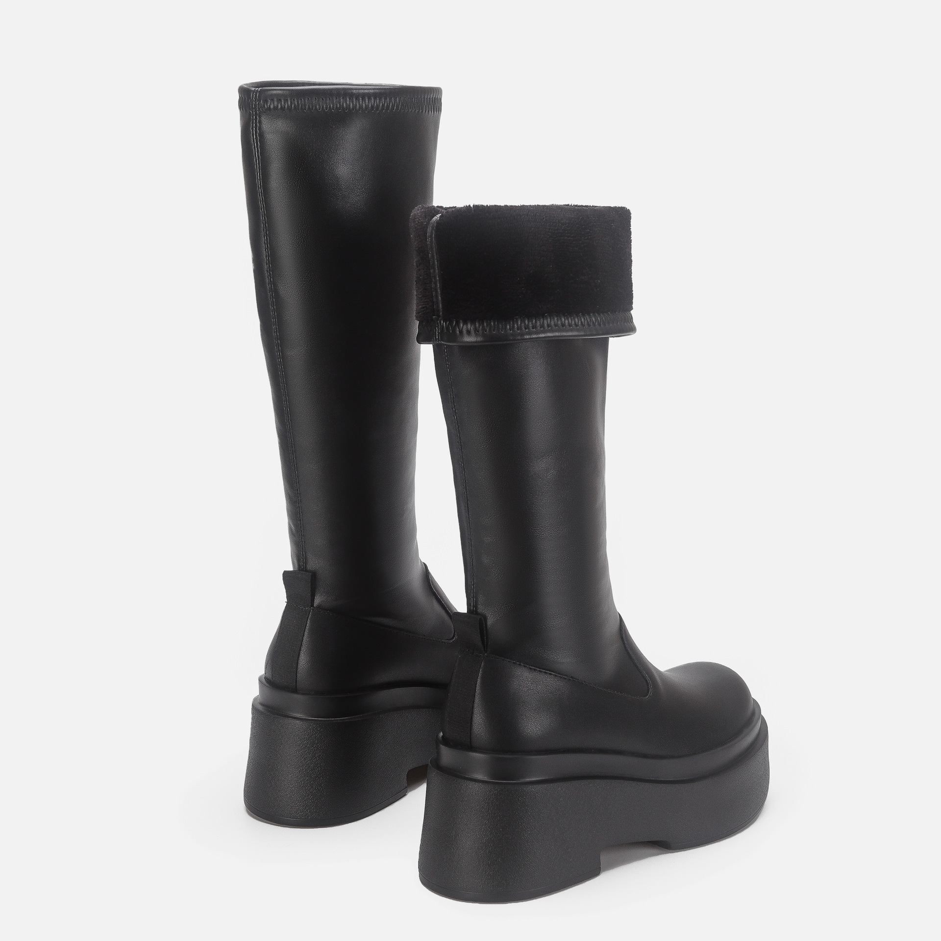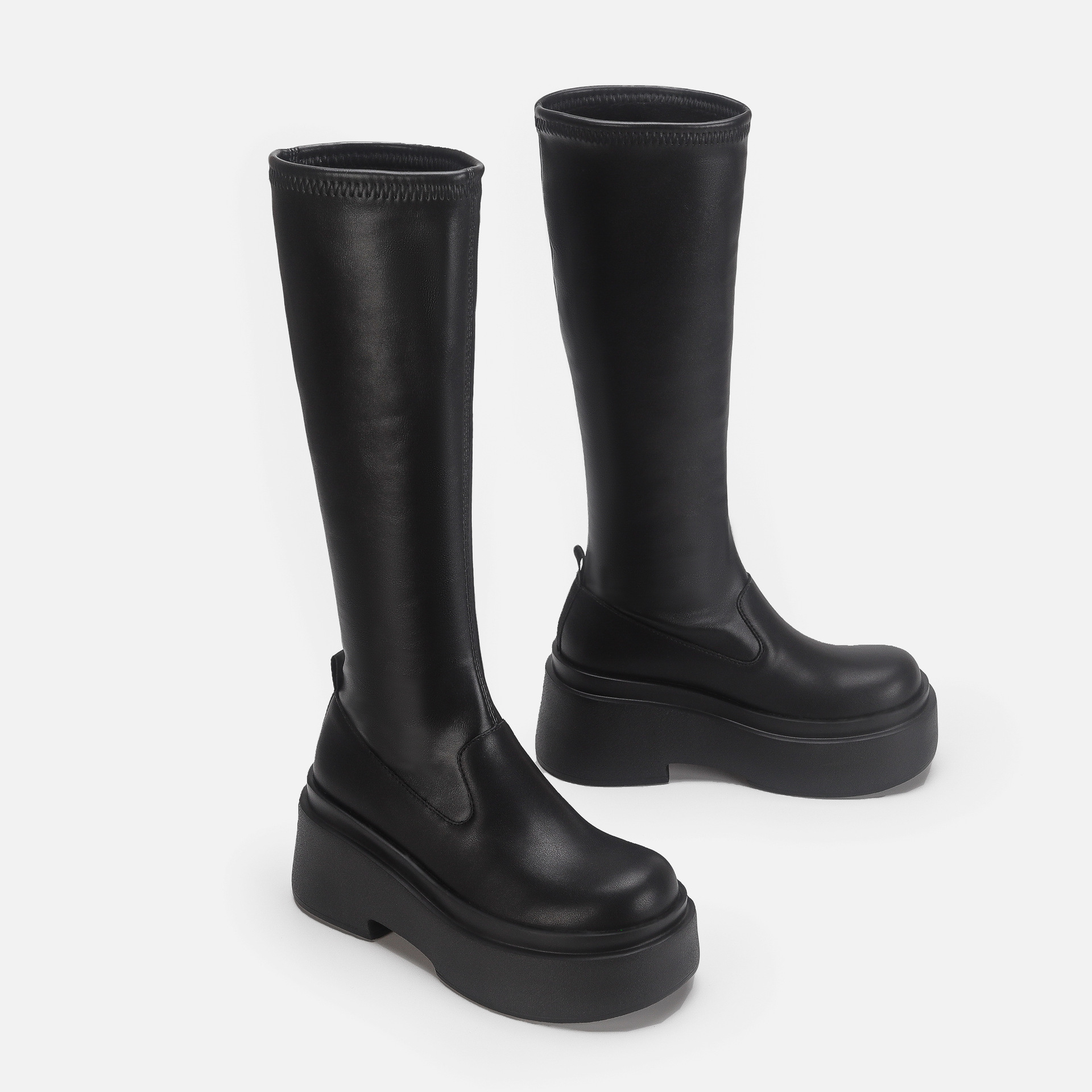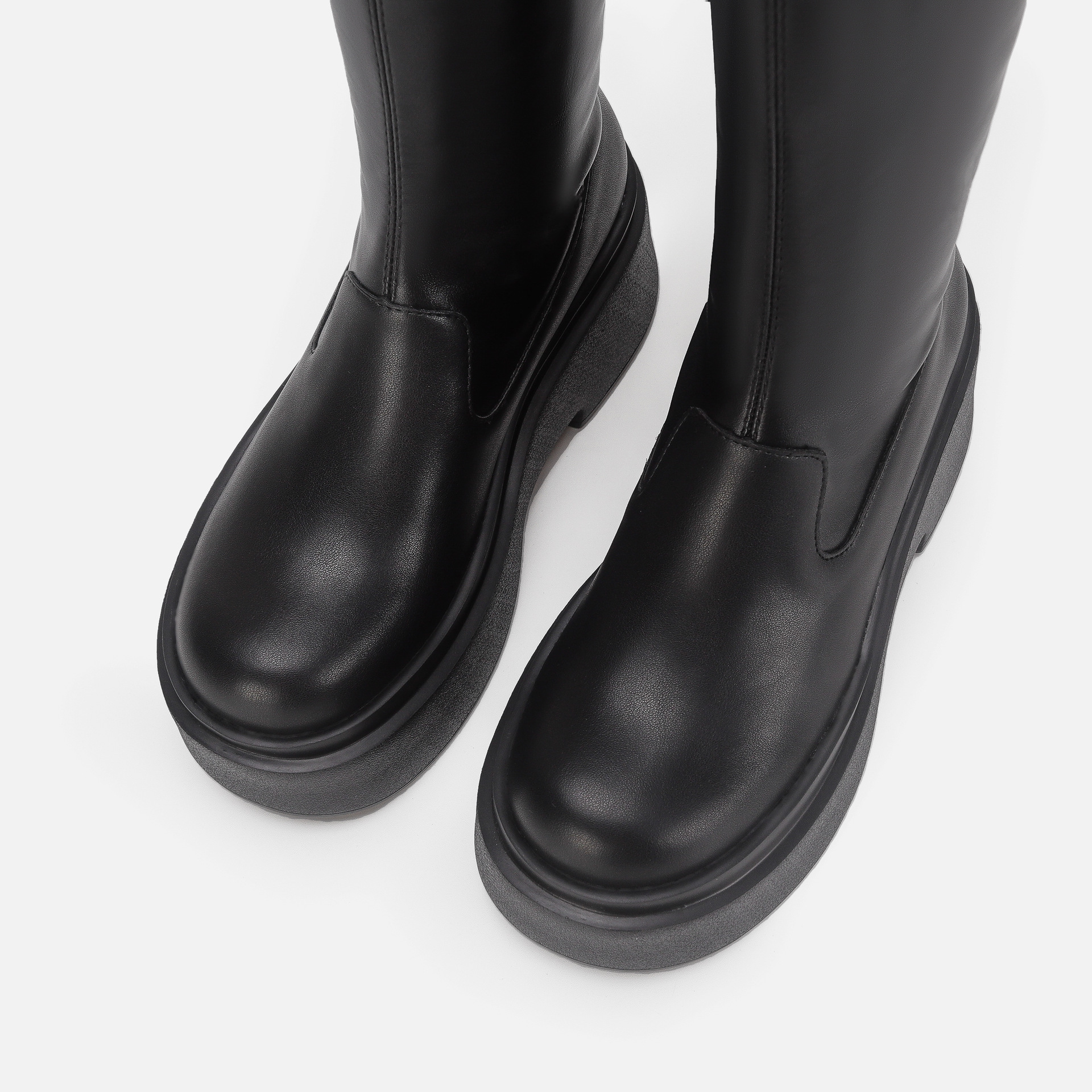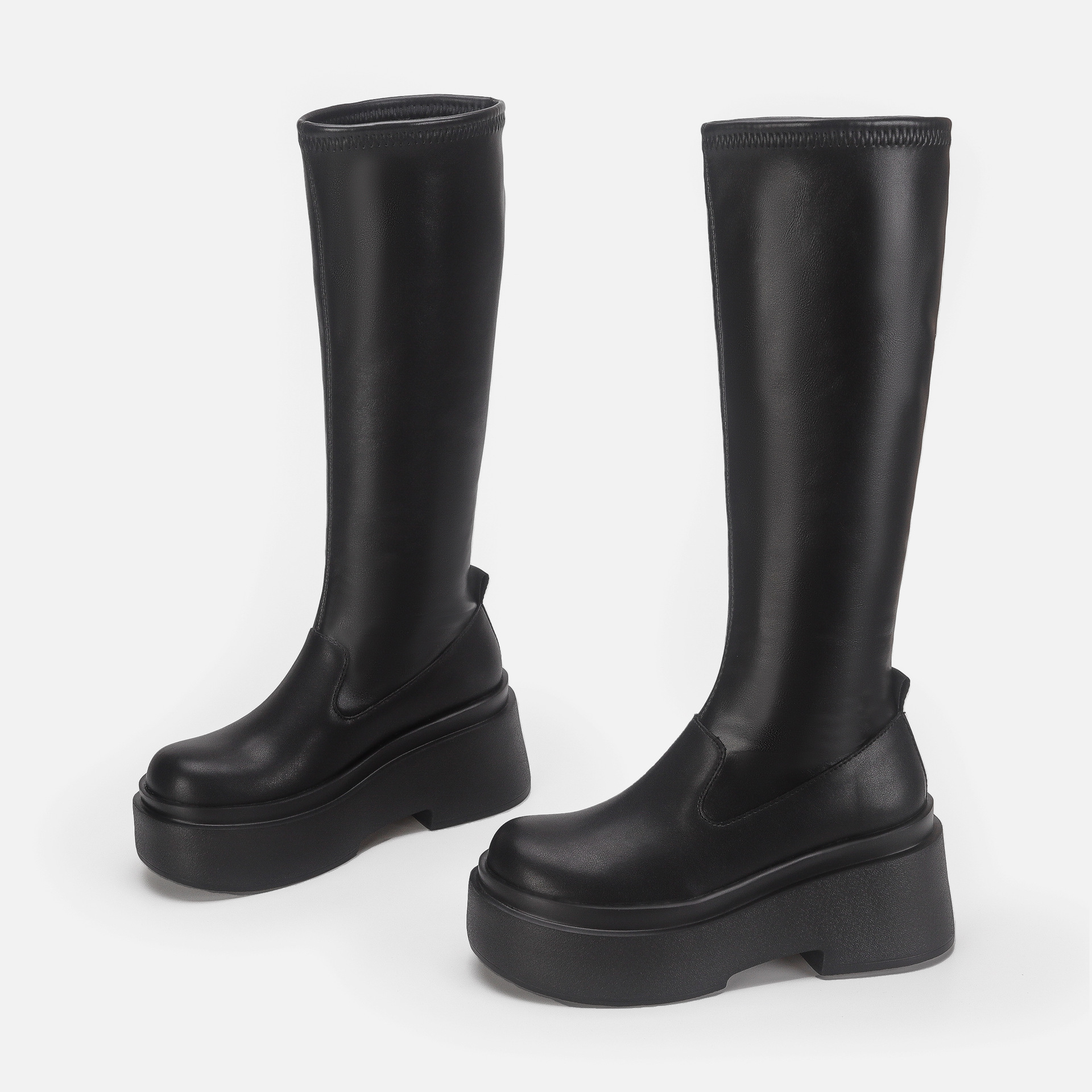 Fashion elements: Combines knight boot style with sewing thread and waterproof platform details
