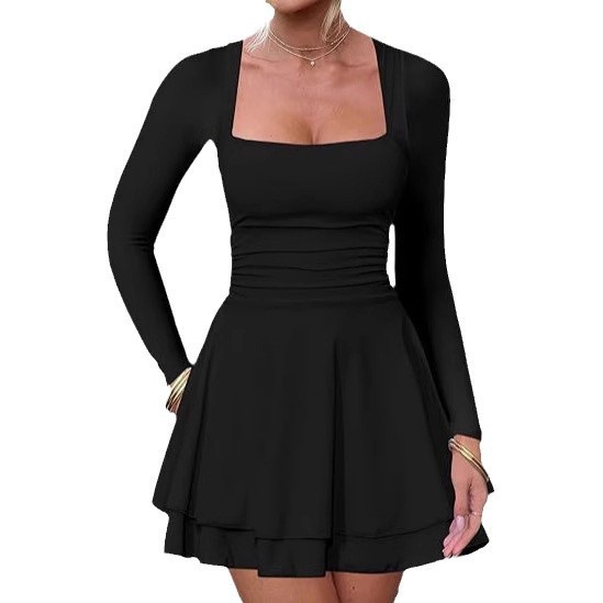 Style: Umbrella skirt, square collar, long sleeves, high waist