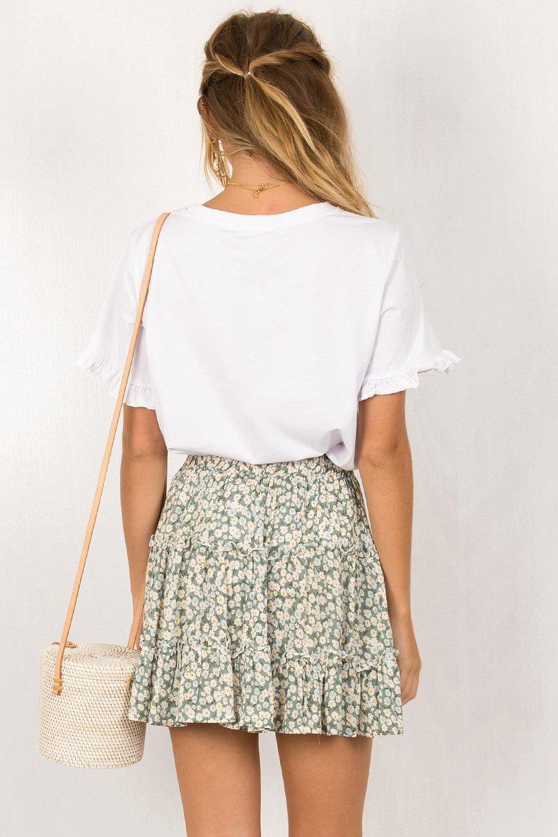 Ruffled Skirt: Elegant falbala detailing adds a feminine and playful touch to the skirt.