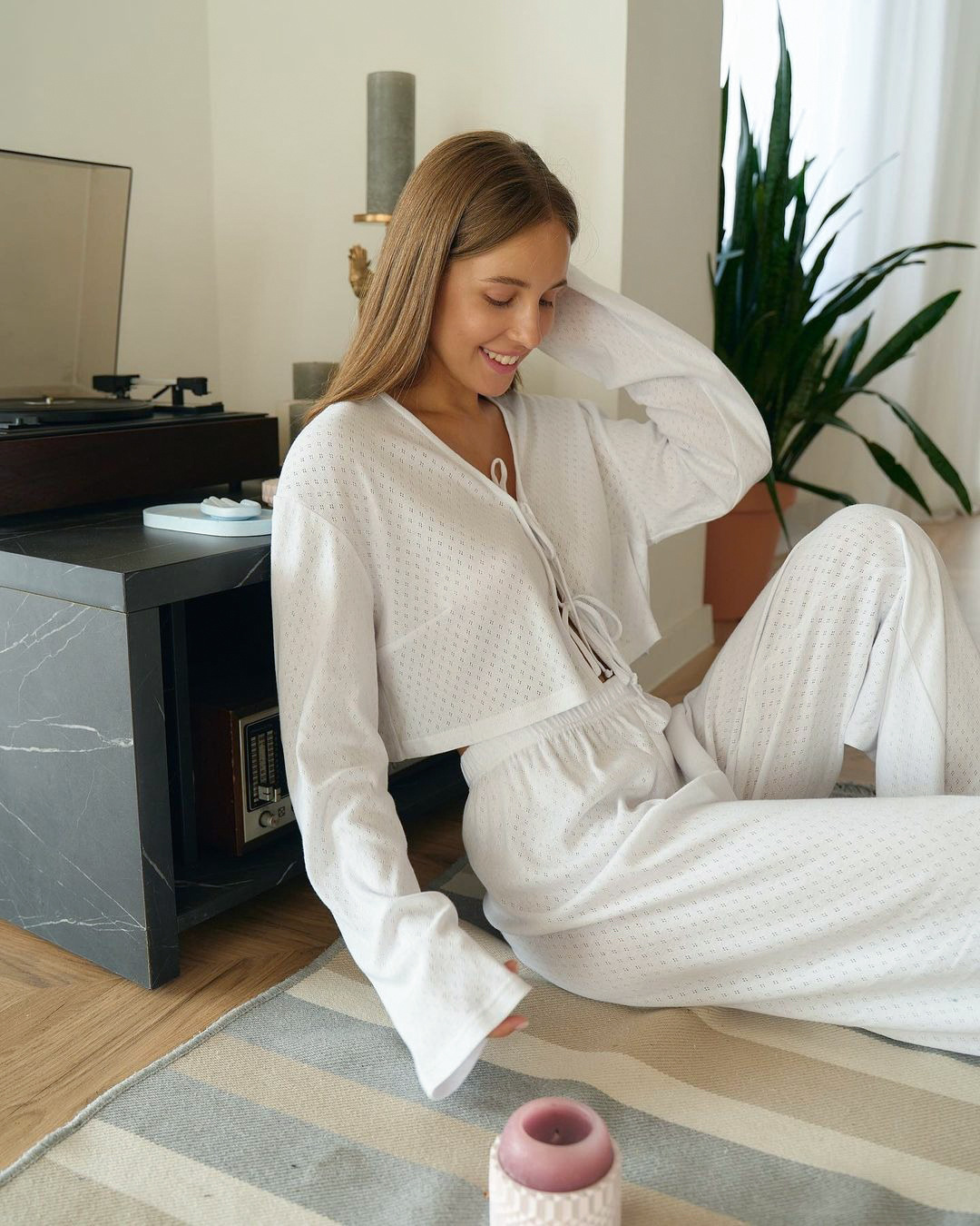 Two-Piece Set: Coordinated top and pants for versatile styling