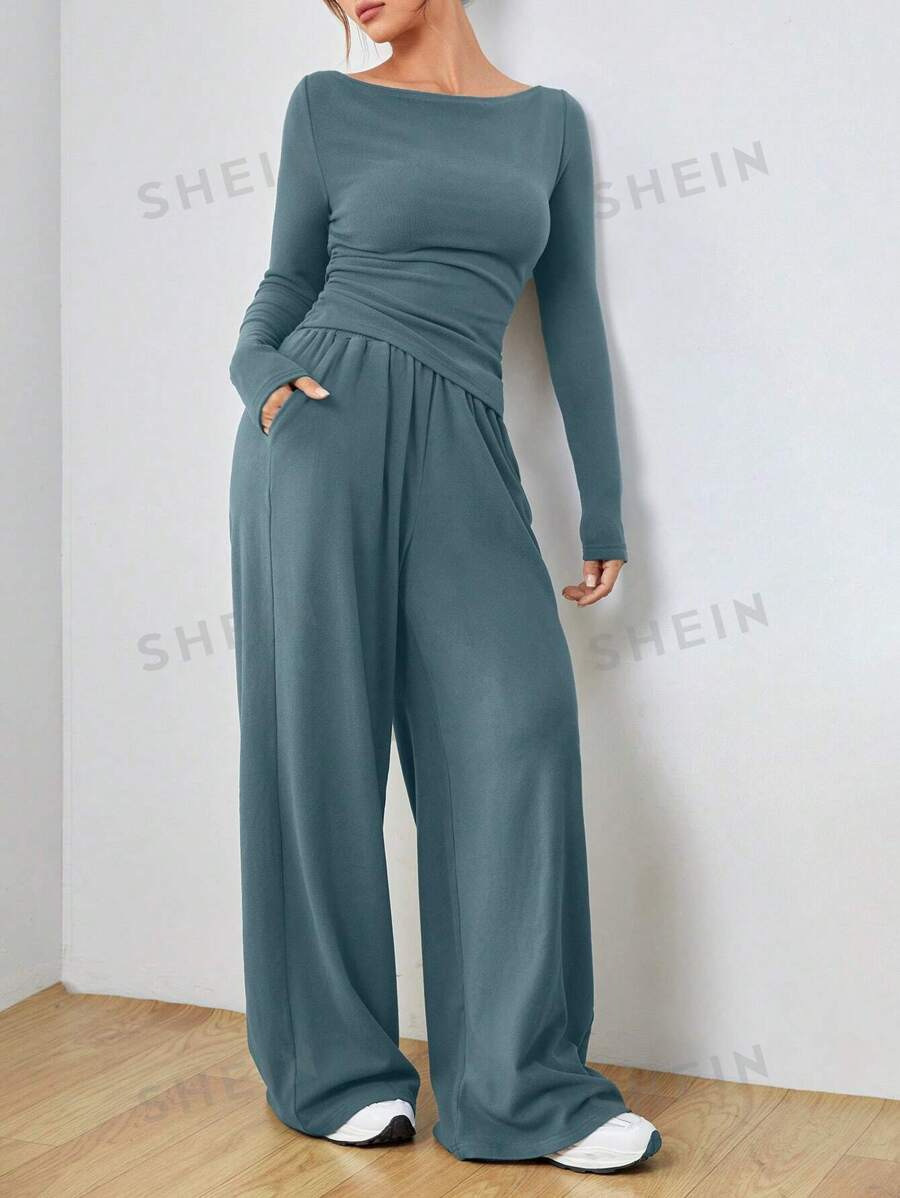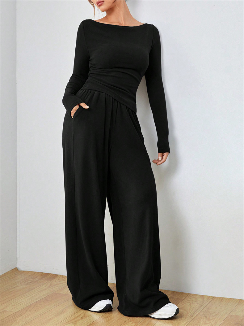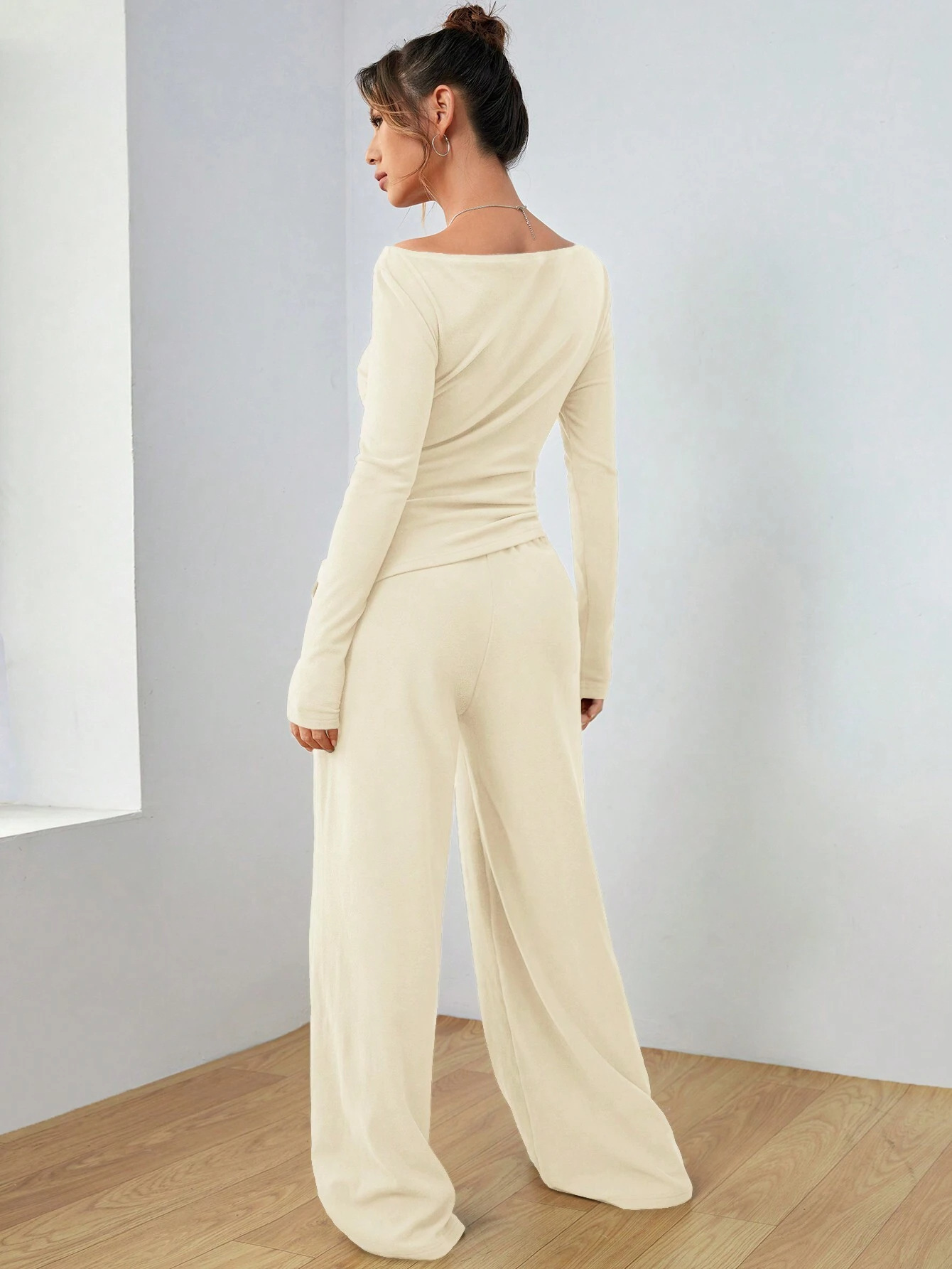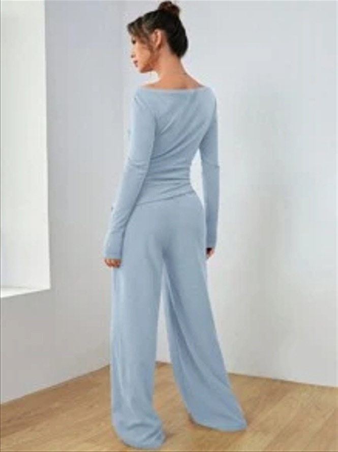 Relaxed Fit: Wide-leg pants and top set for comfortable, effortless styling.