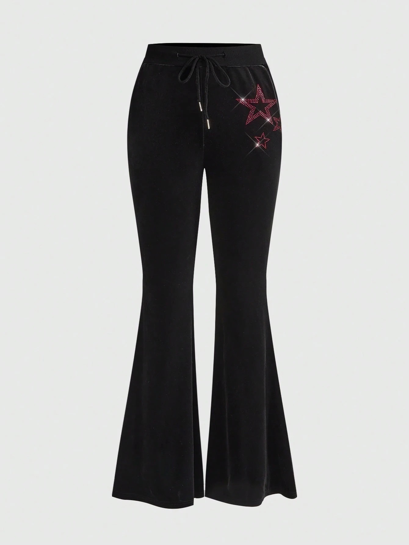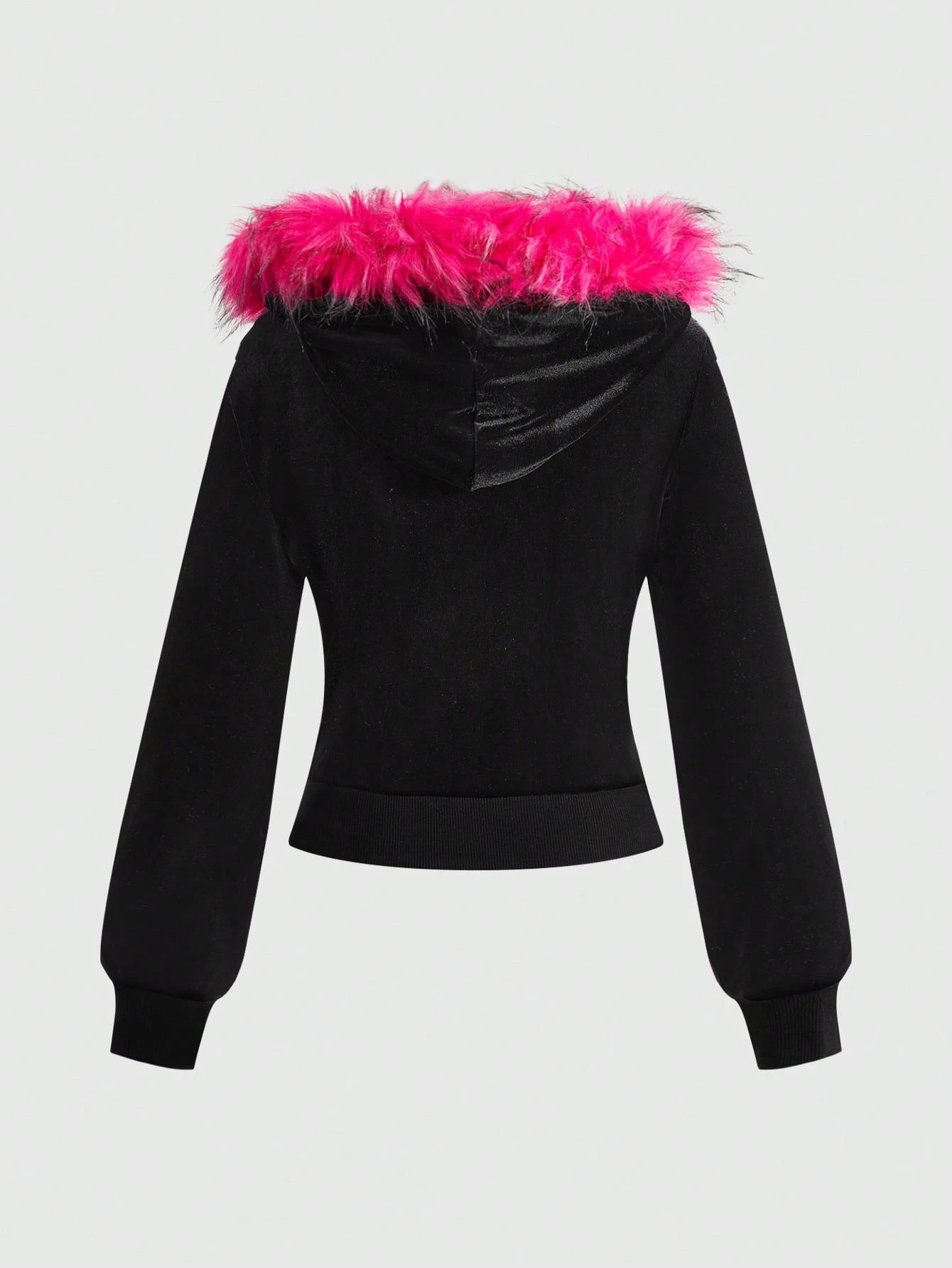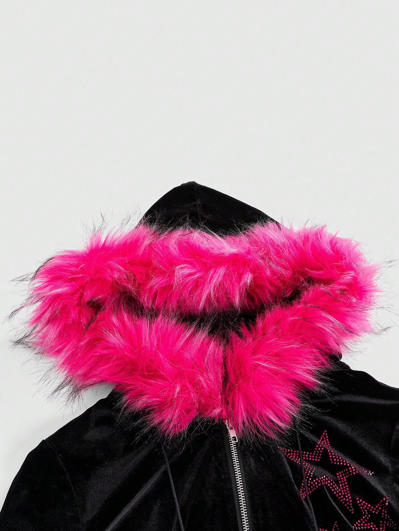 Versatile Design: Hooded plush jacket paired with bell bottom pants