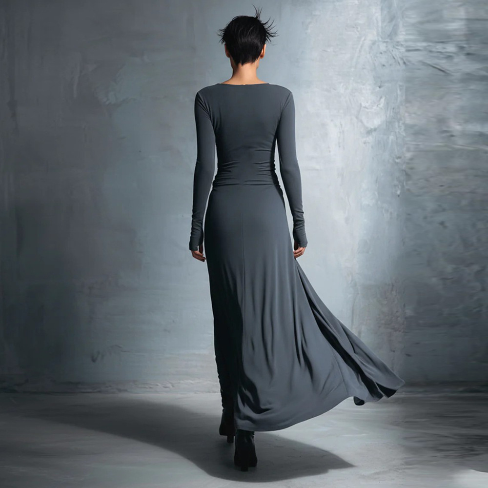 Flowy A-Line Cut: Features a graceful A-line skirt with a sweeping hem for movement and elegance